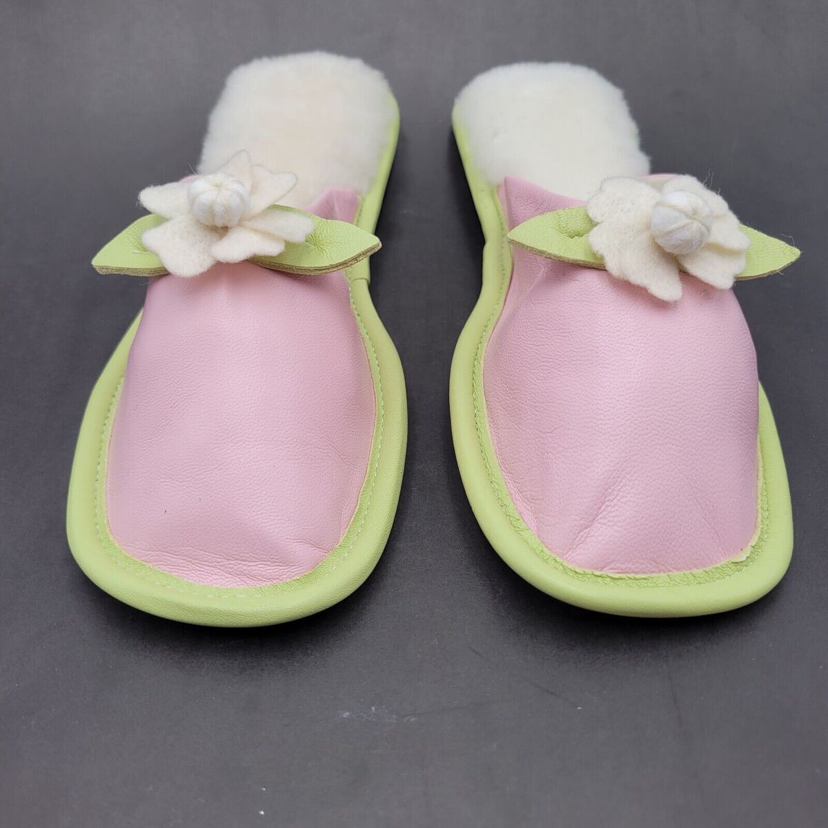 Vtg Amy Jo Gladstone Pink & Green Slide Slippers Size M Leather