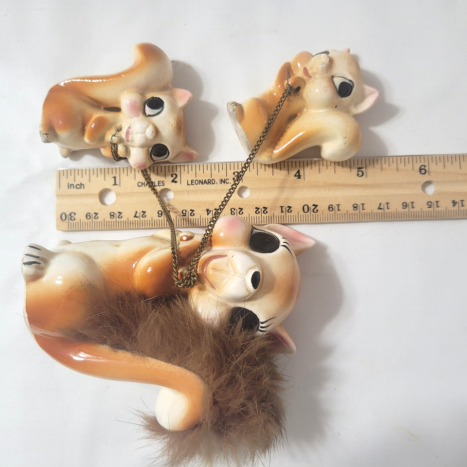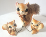 - Vtg Anthropomorphic Ceramic Squirrel 3 pc Chained Family Fur on Tail Japan RARE