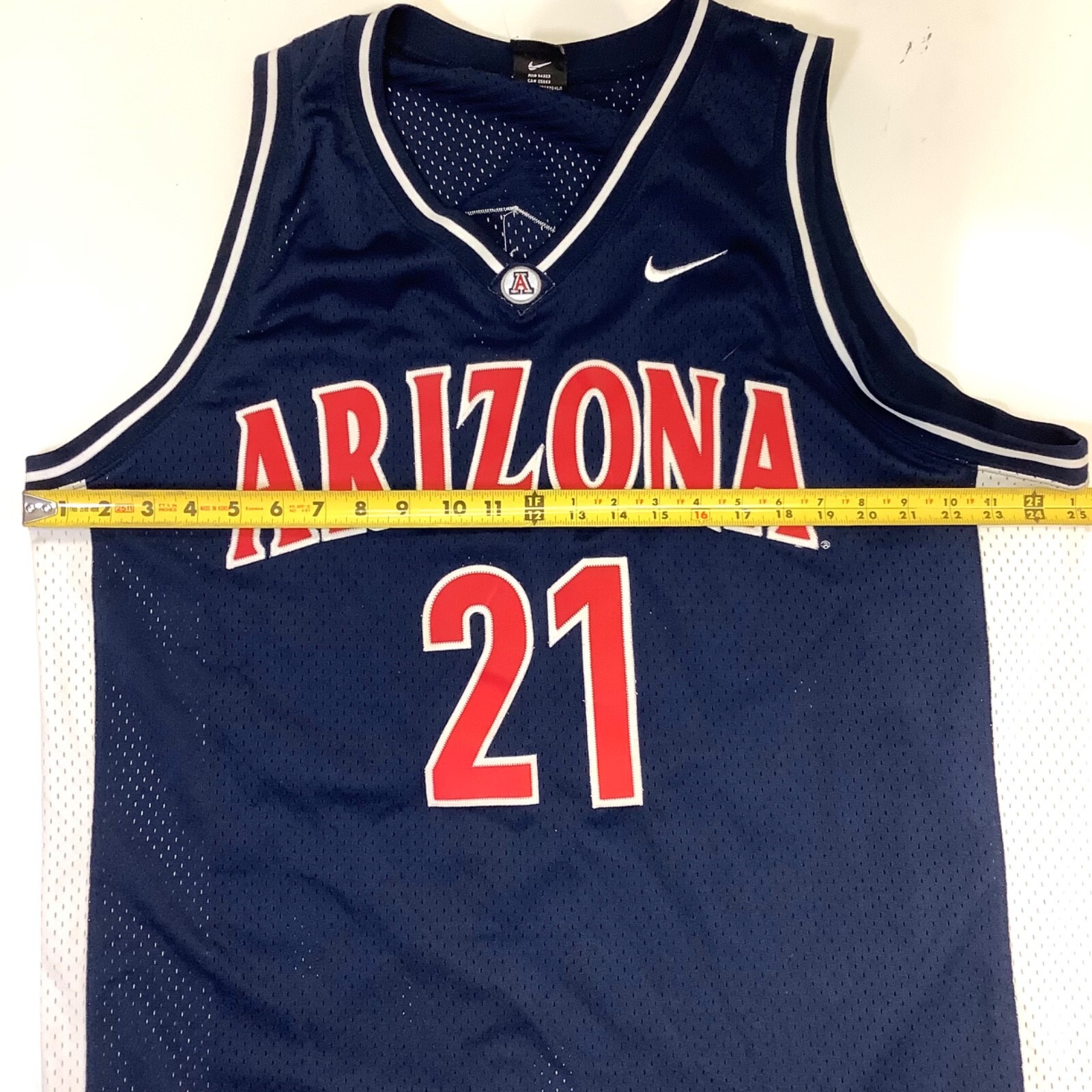 Vtg Arizona Wildcats #21 Embroidered Navy Blue Nike Elite Basketball Jersey Size XXL. Shows some very minor wear but overall very good condition. Please see all photos. Photos include measurements for armpit to armpit and for top of Jersey to bottom of Jersey.