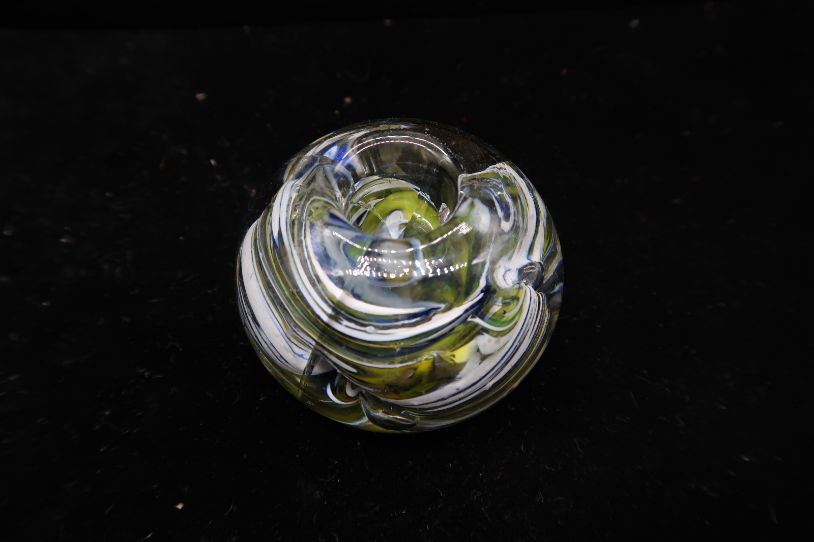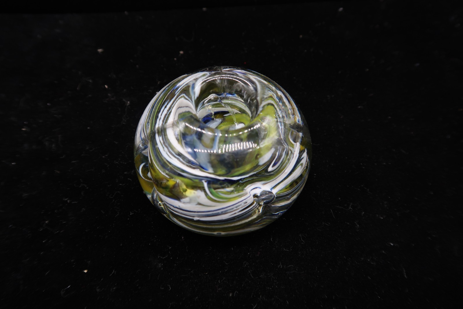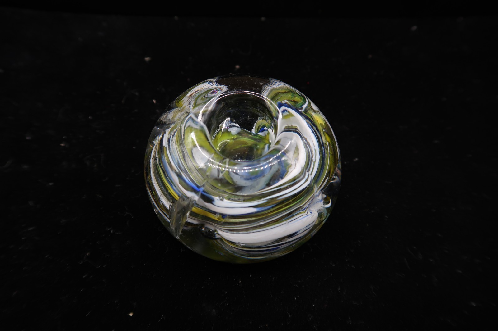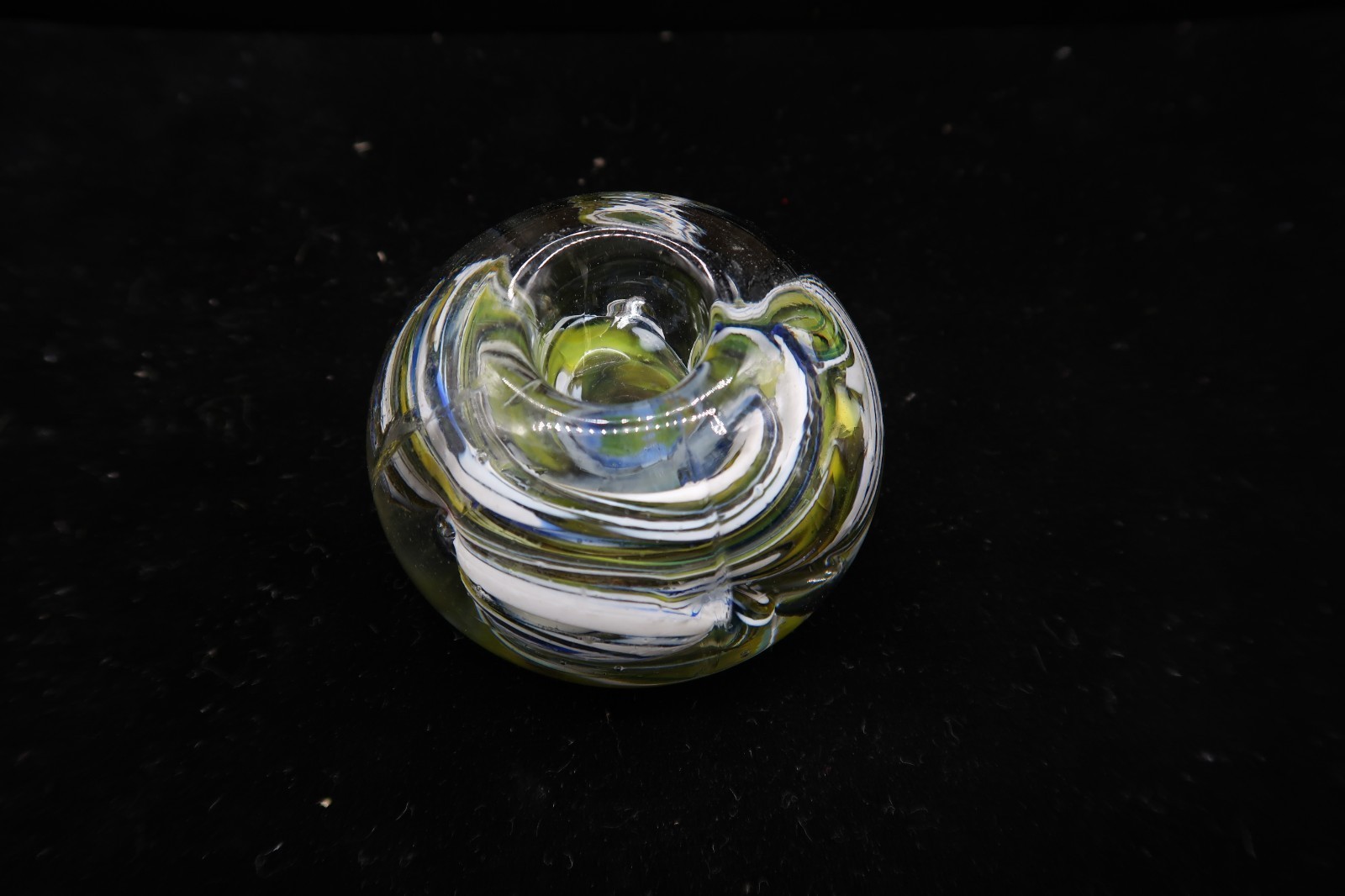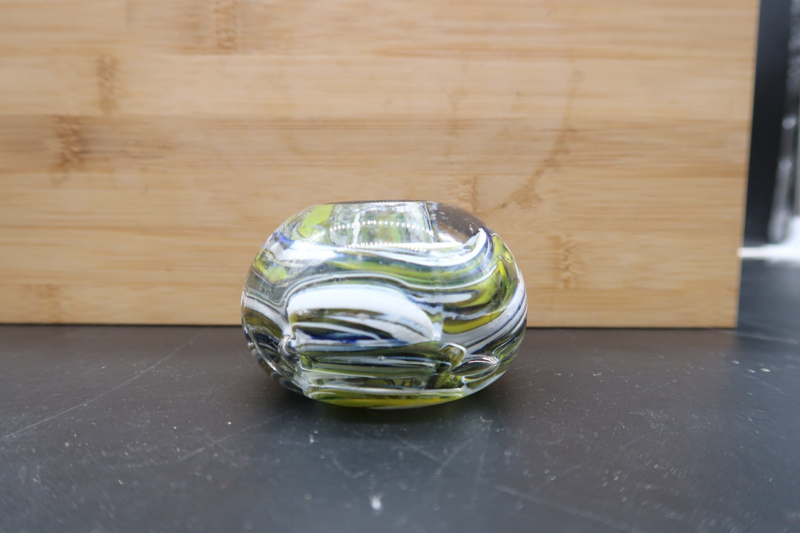 - Vtg Art Glass Paper Weight Taper Candle Holder Swirl Hand Made Design