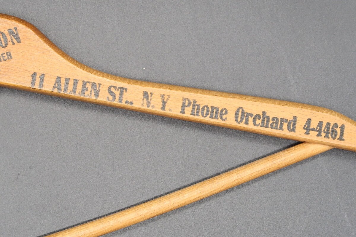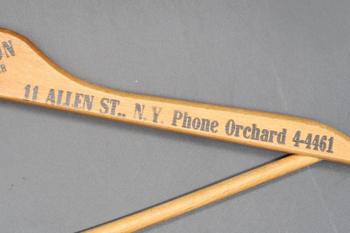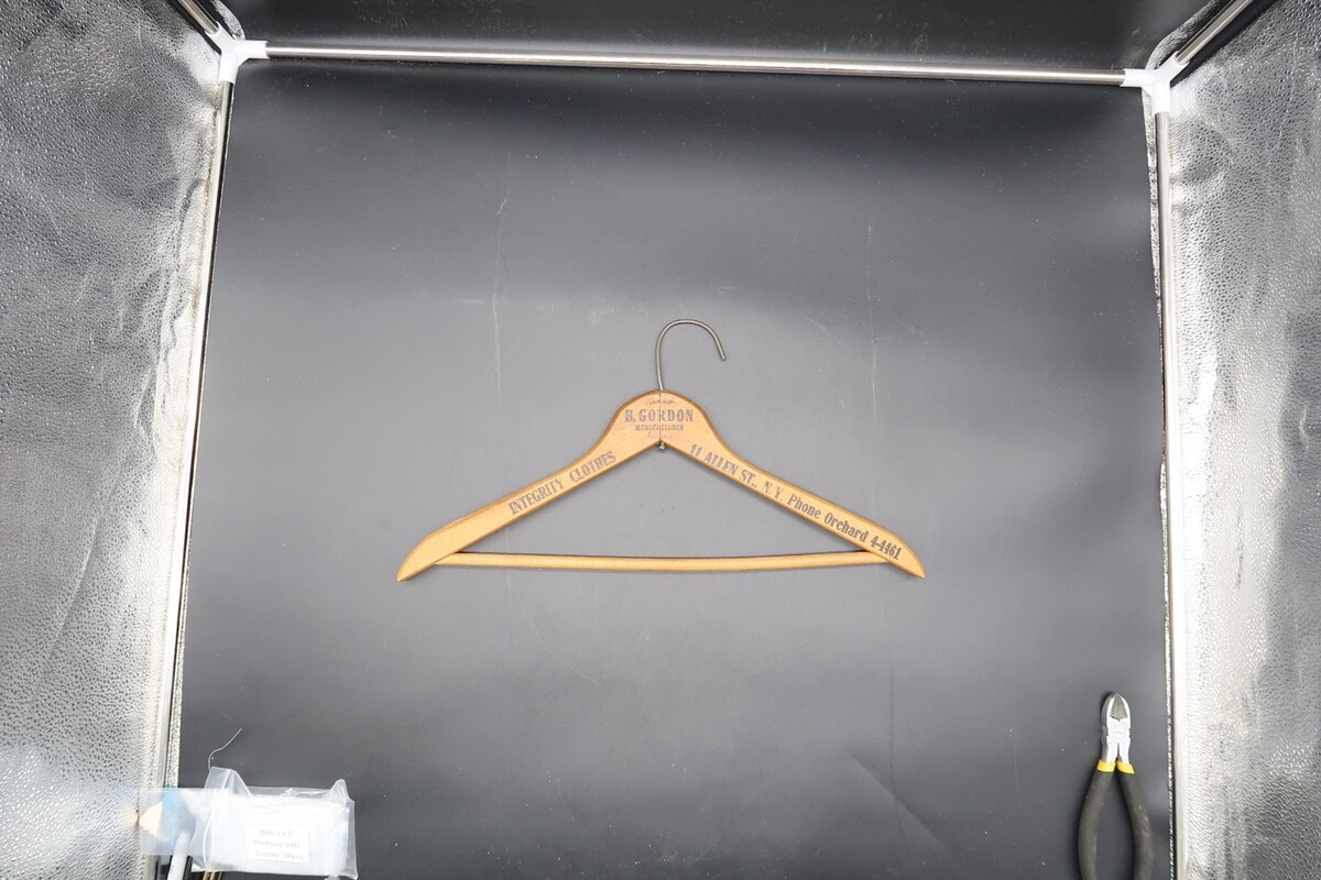 - Vtg B Gordon Wooden Hanger Integrity Clothes 11 Allen Street NYC Advertising HTF