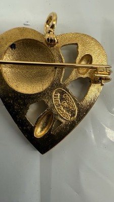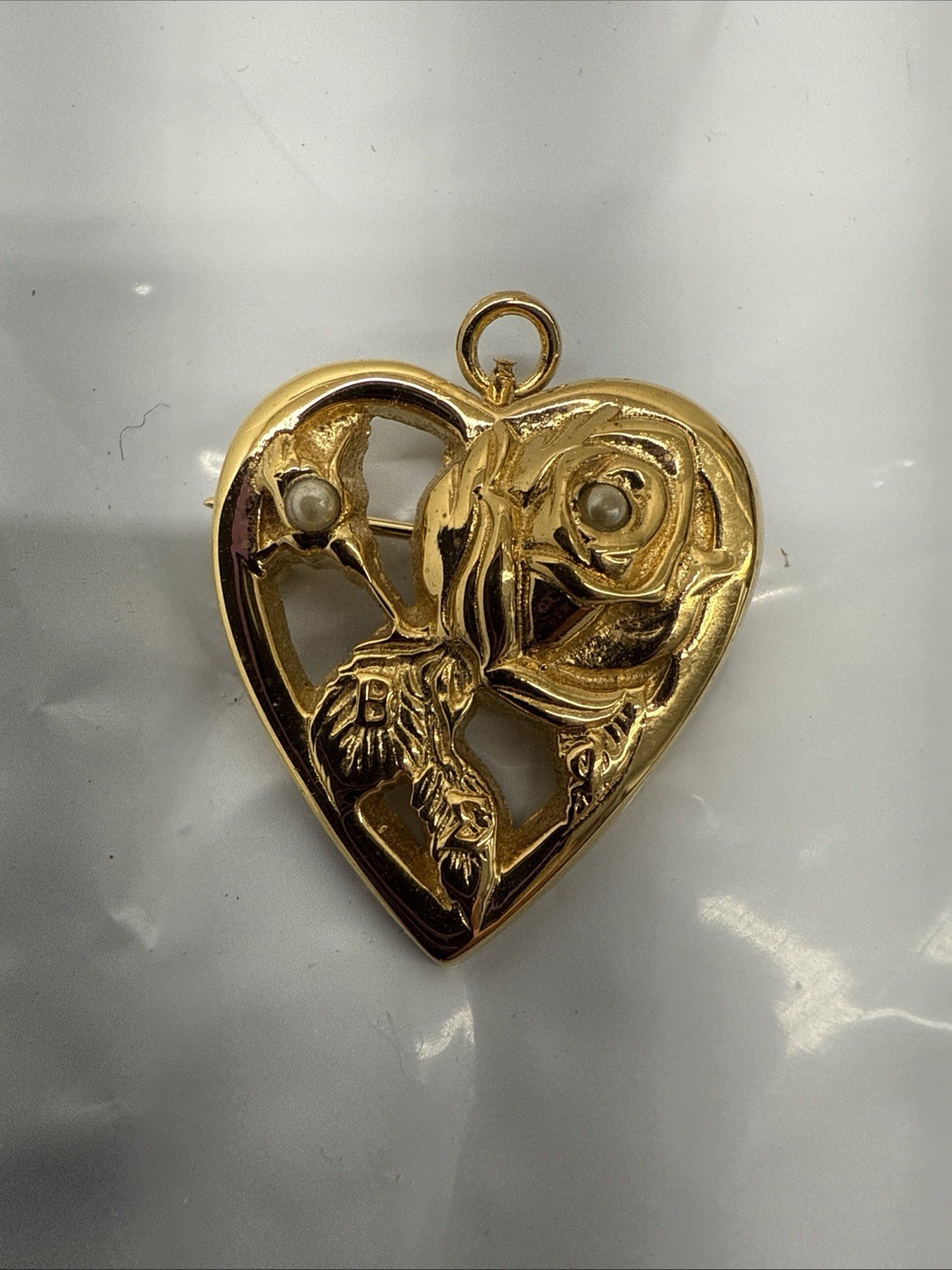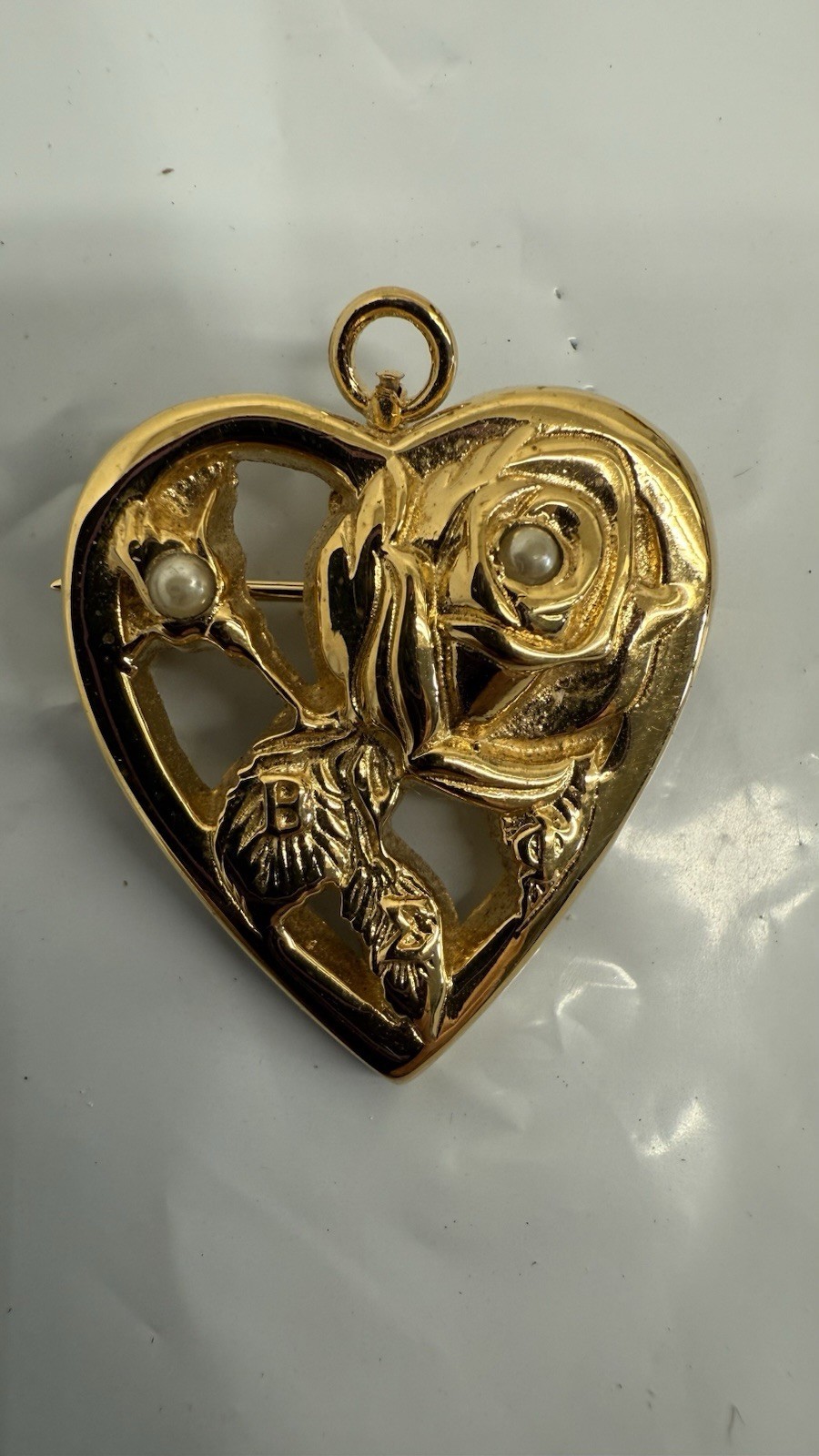 - Vtg Beta Sigma Phi Gold Tone Pin Order Of The Rose Heart Pendant Pearl Brooch