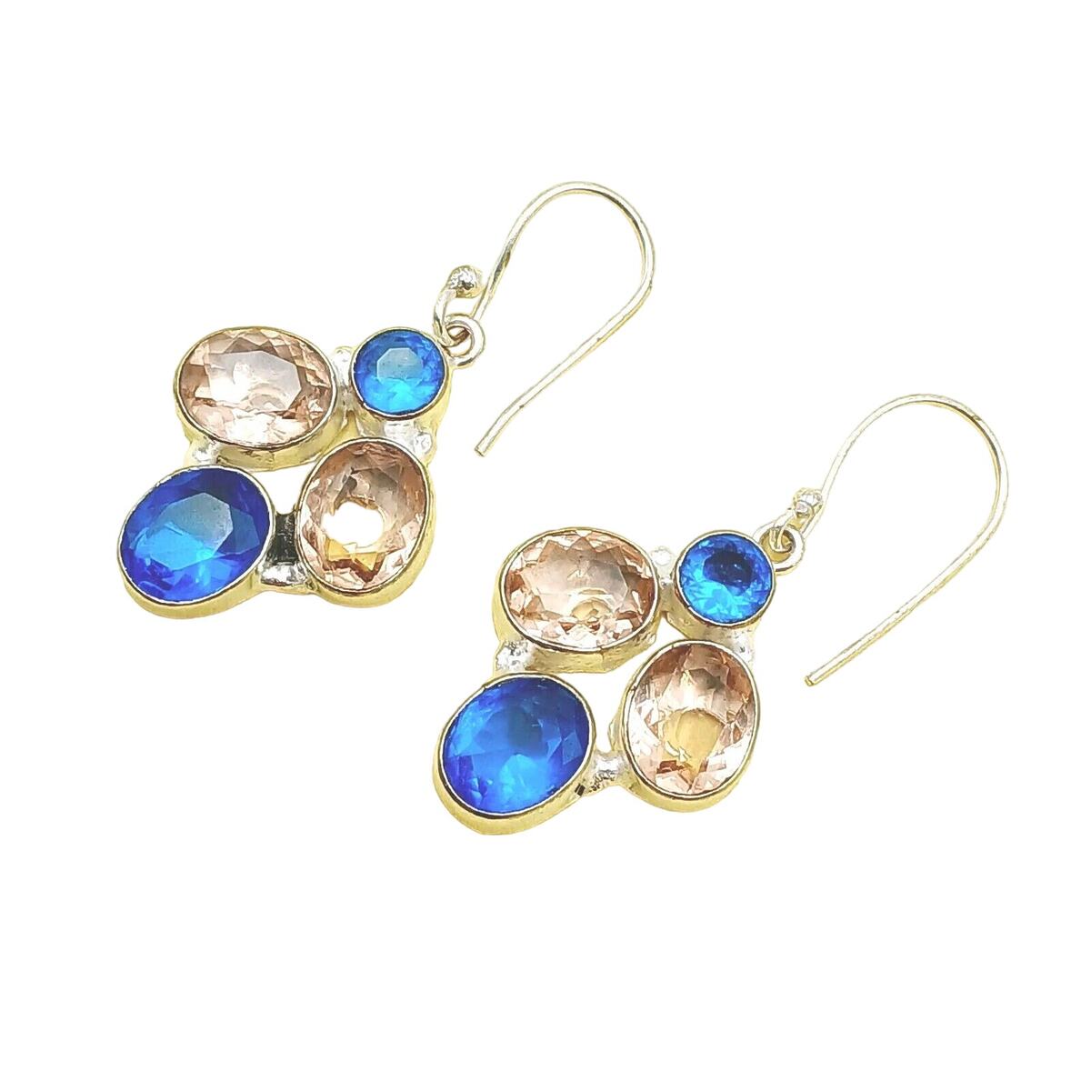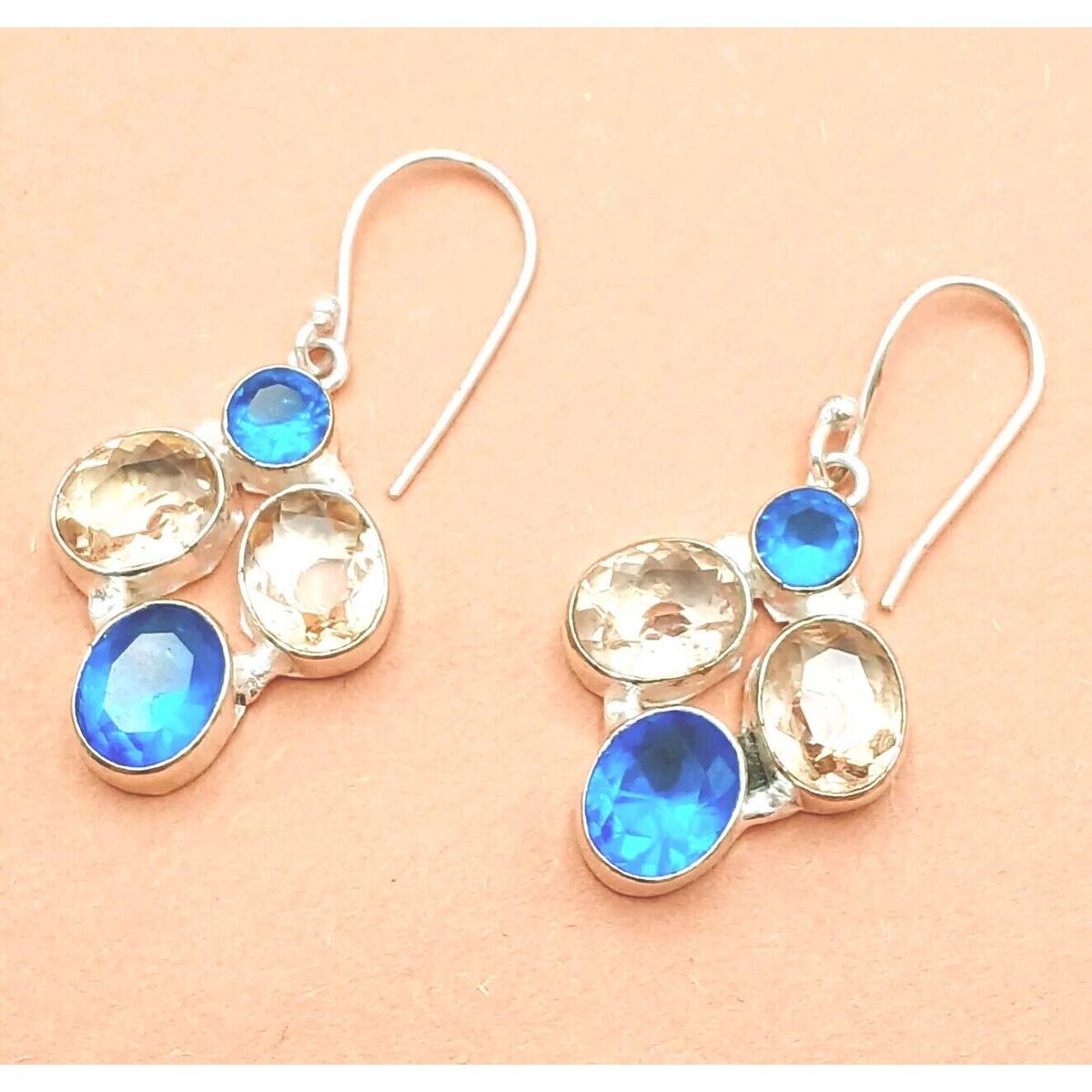 - Vtg Blue Pear Cut Women Drop Dangle Earring 925 Sterling Silver