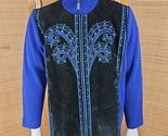 Vtg Bob Mackie Jacket Woman 2X Blue Suede Embroidered Wearable Art Boho Zip