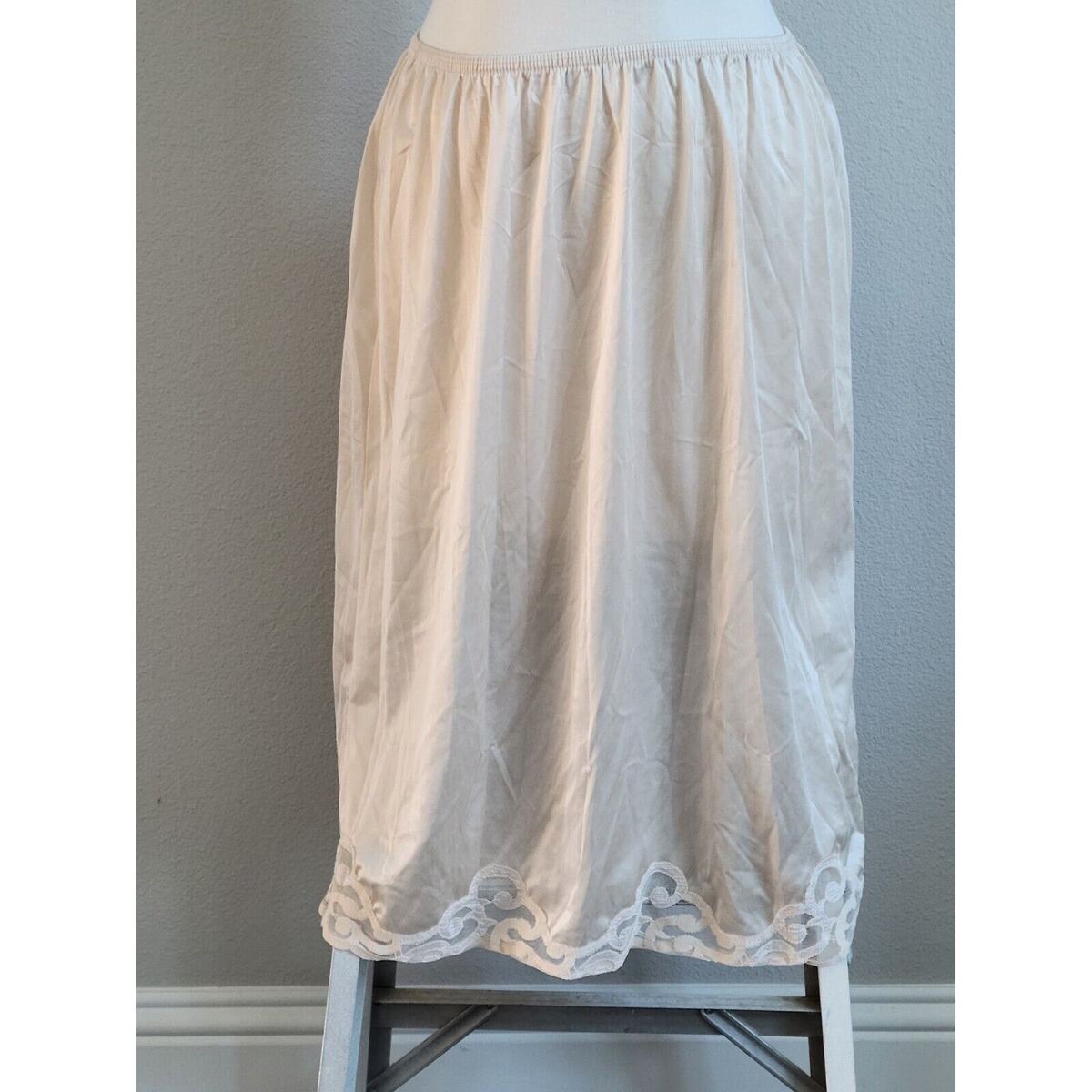 - Vtg Cabernet women 100% Nylon Long Petticoat Under Skirt Cream sz L / 24"
