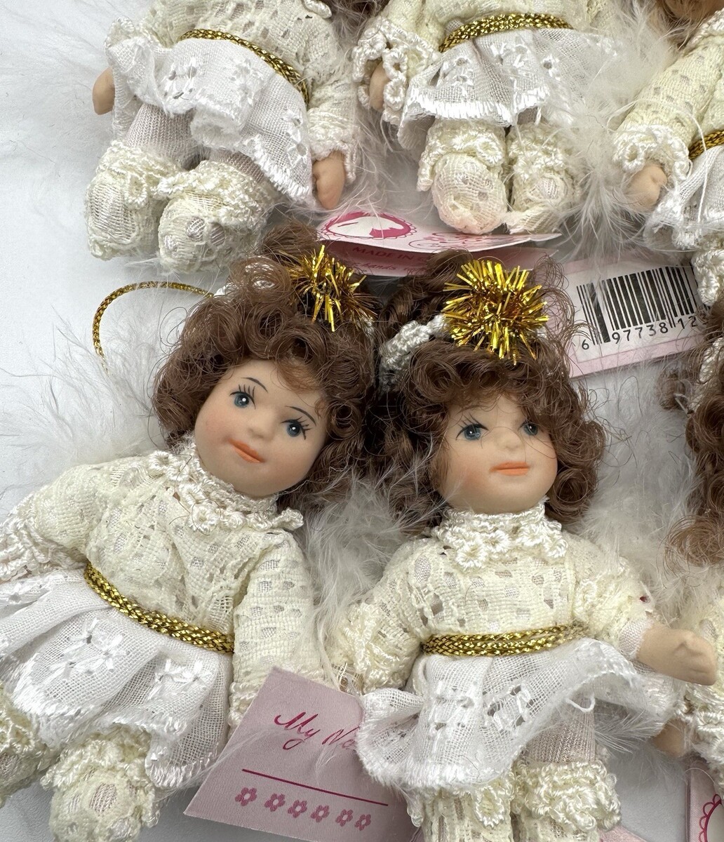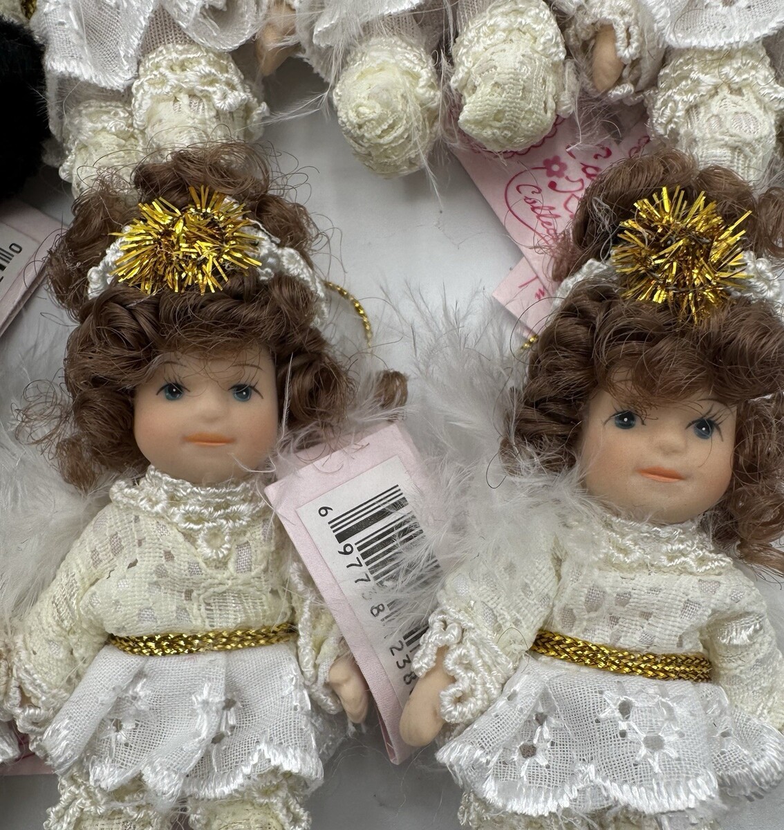 Vtg Cameo Kids Angel Dolls Lot of 18 Ornaments Porcelain 3" Feathers Bisque New