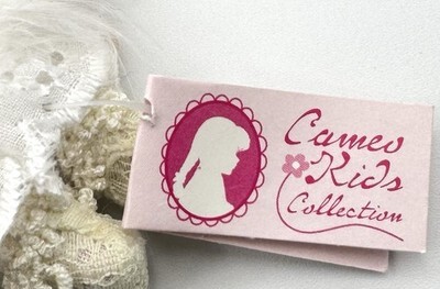 Made with white or ivory lace with gold trim and one has black "fur" on an ivory coat