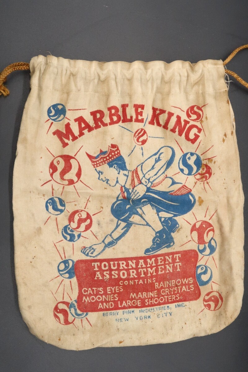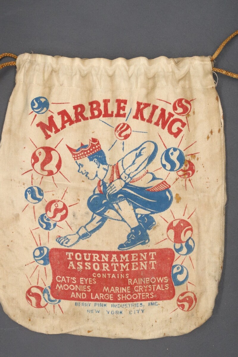 - Vtg Canvas Marble King Tournament Assortment Marble Bag Circa 1960s Draw String