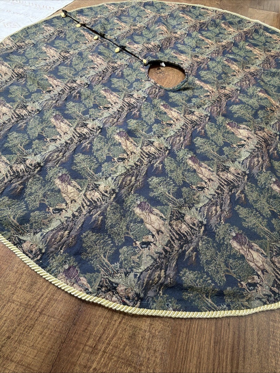 - Vtg Capezio Fox Hunt Tapestry Equestrian Dogs Christmas Tree Skirt