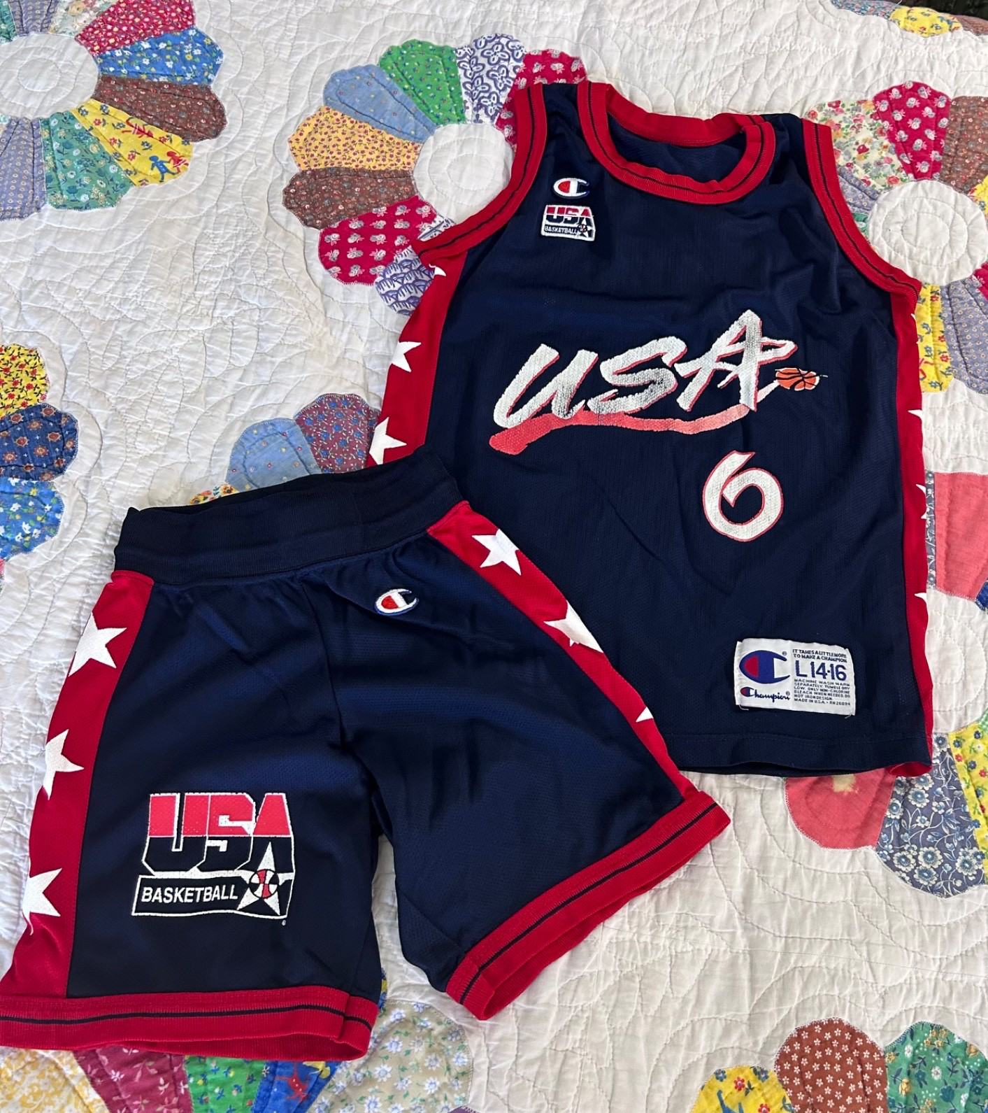 Vtg Champion Hardaway Jersey USA Basketball Kids youth Jersey size 14-16, shorts are a 10-12.