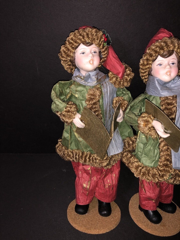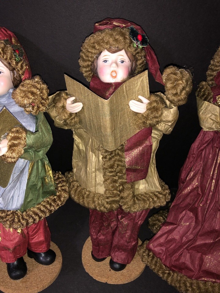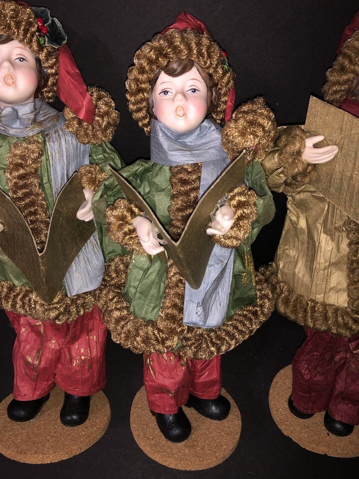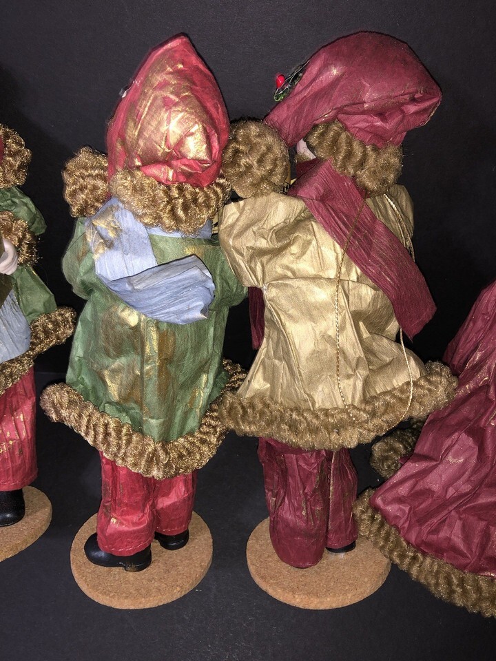- Vtg Christmas Carolers Porcelain Face & Hands Paper Mache Set Of 6 Men Women 9”