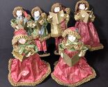 Vtg Christmas Carolers Porcelain Face & Hands Paper Mache Set Of 6 Men Women 9”
