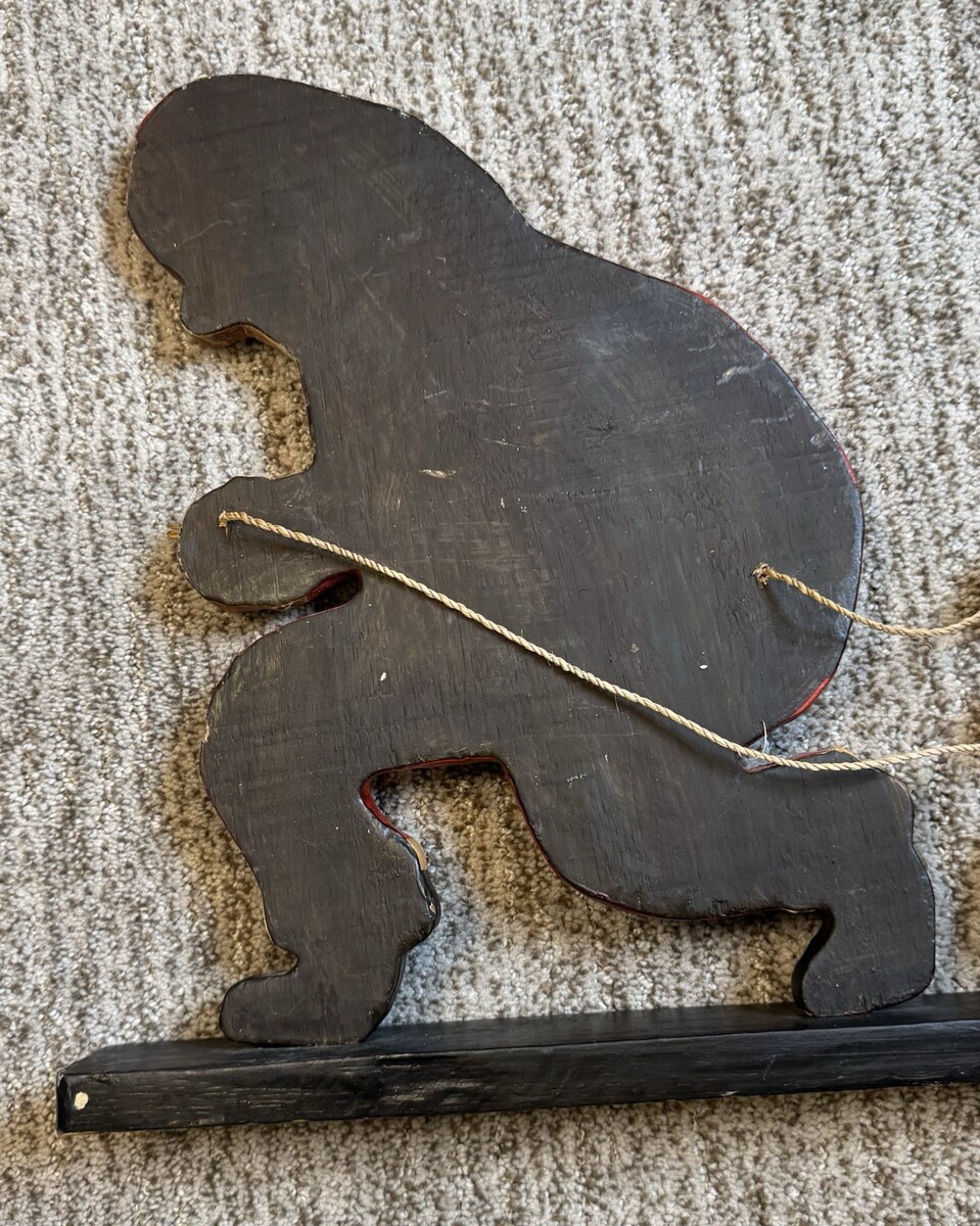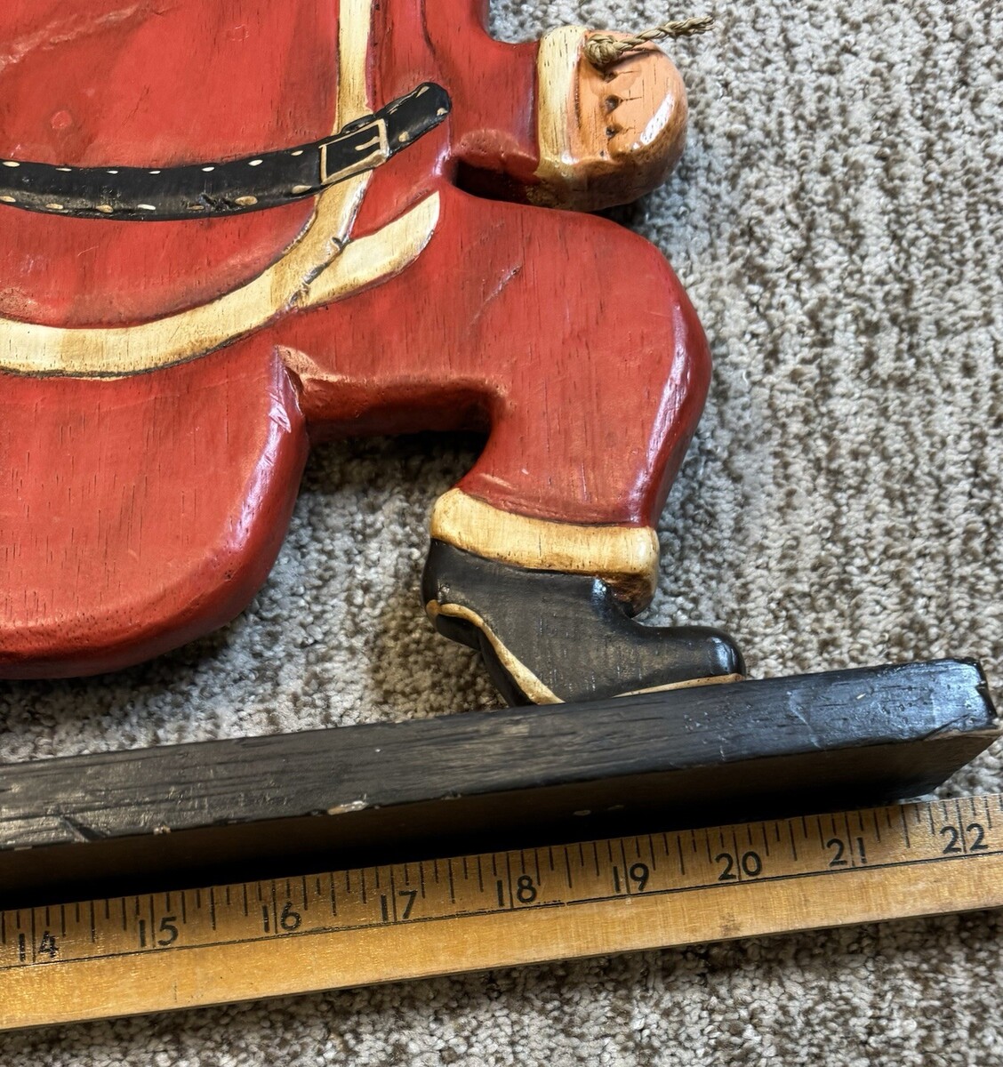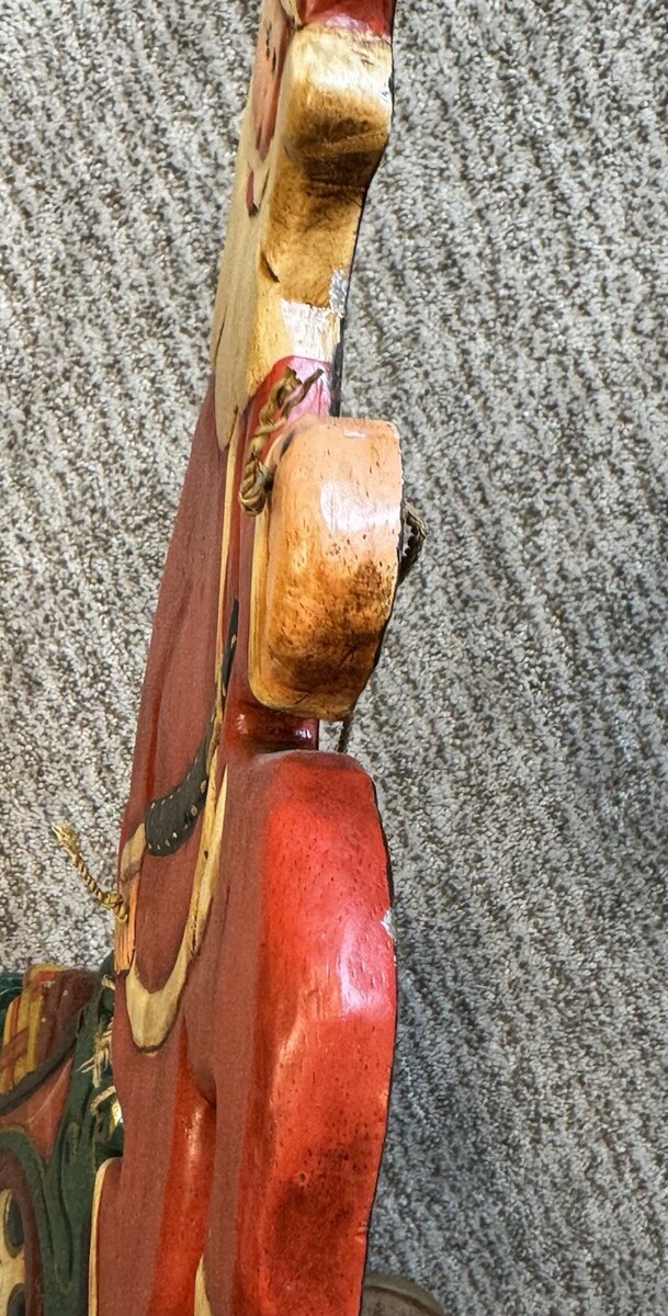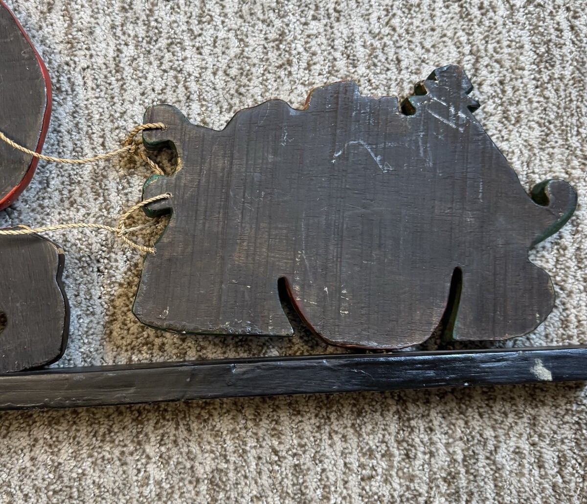 - Vtg Christmas Folk Art Santa Sleigh Display Hand Carved Wood Painted 22" Decor