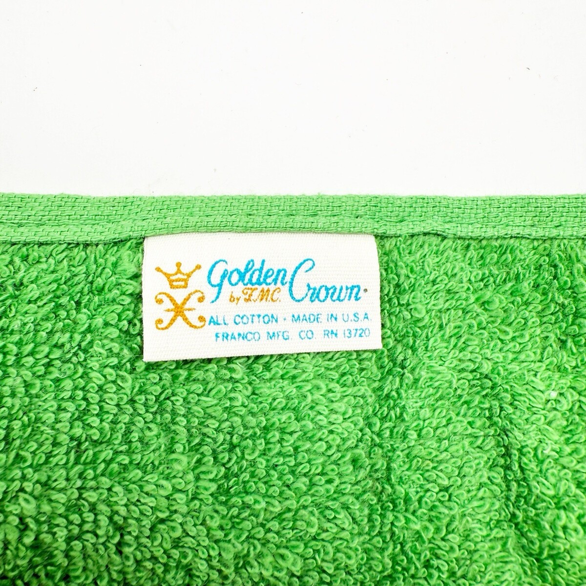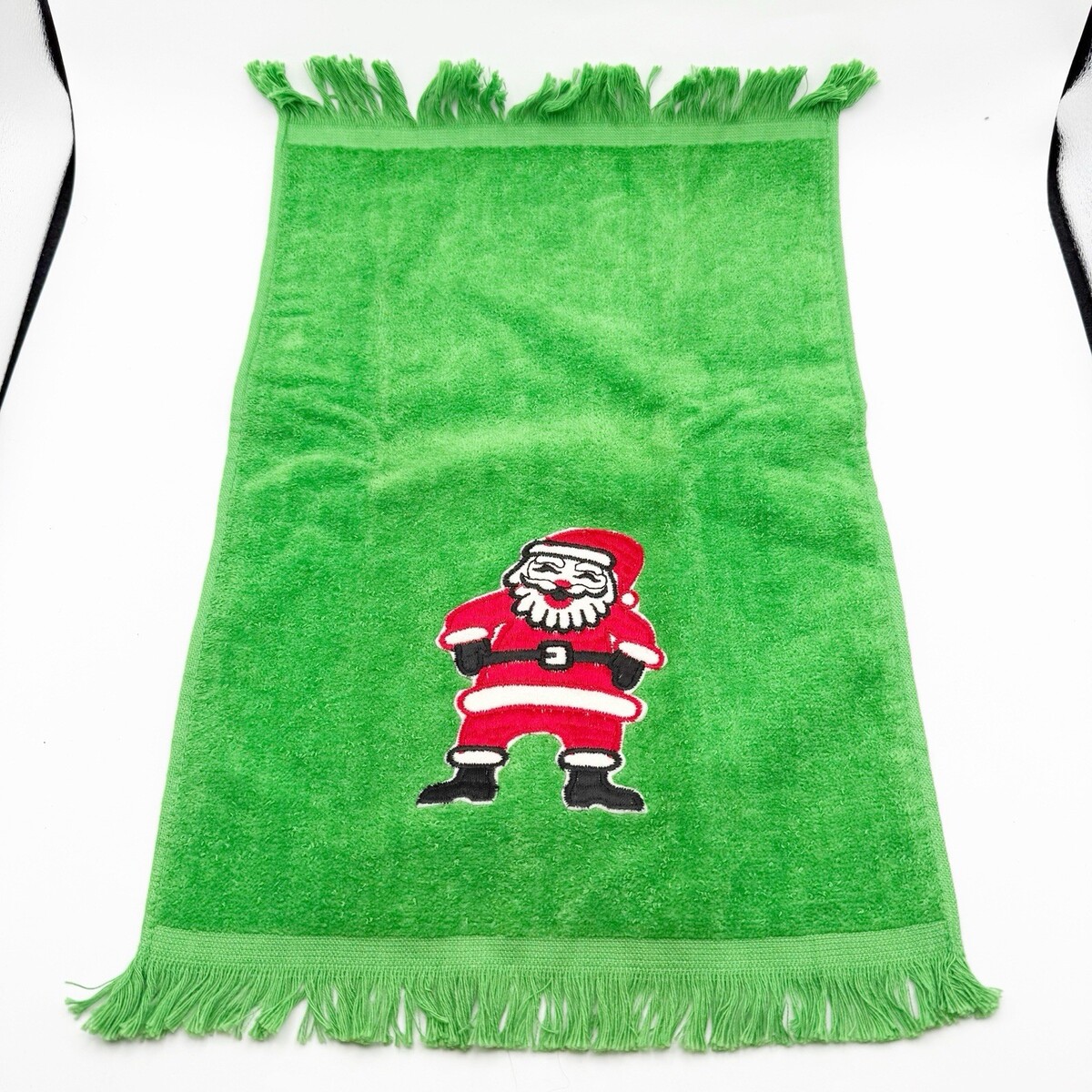 Vtg Christmas Green Wash Towel Fringe Happy Santa Claus Bath Decor Golden Crown