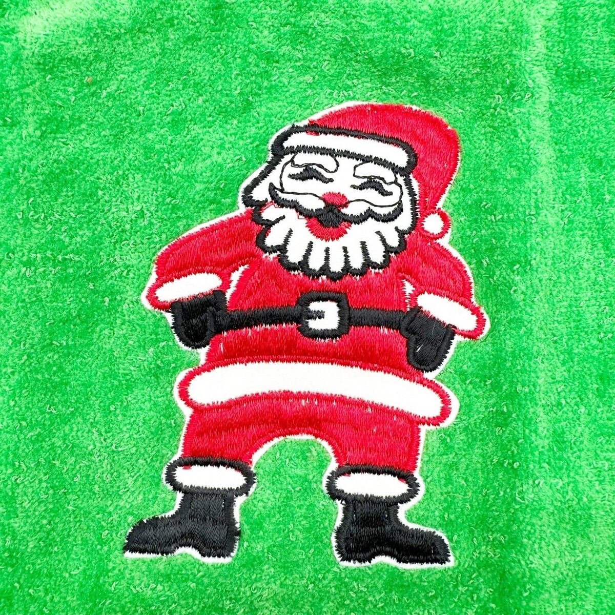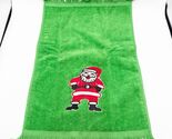 - Vtg Christmas Green Wash Towel Fringe Happy Santa Claus Bath Decor Golden Crown