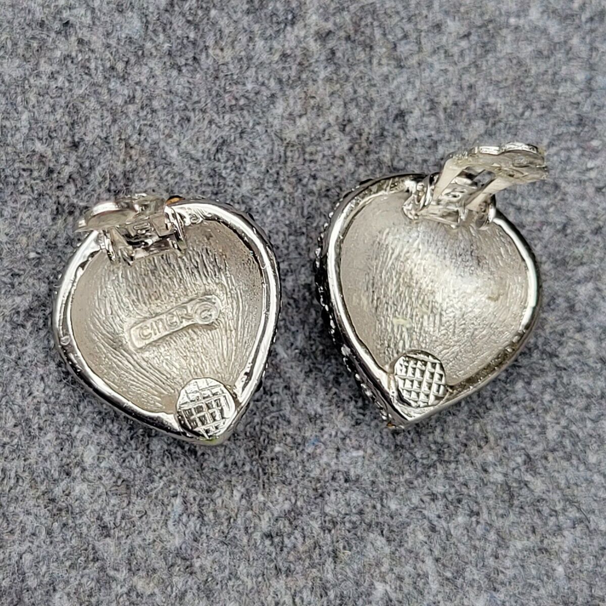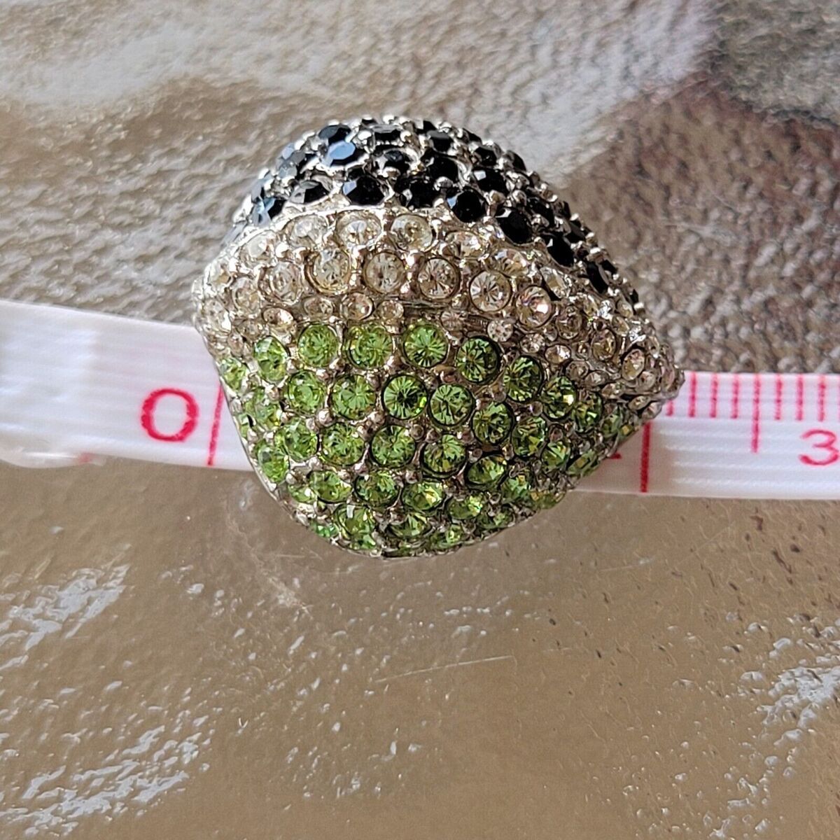 These vintage Ciner earrings are a stunning addition to any jewelry collection. The silver plated clip-on earrings feature beautiful green, white, and black crystals that shimmer in the light. Perfect for special occasions, such as weddings and anniversaries, these earrings are a great way to add a touch of elegance to any outfit. The clip-on design makes them easy to wear and they are perfect for those who do not want to pierce their ears. These earrings are an original piece and are sure to impress.