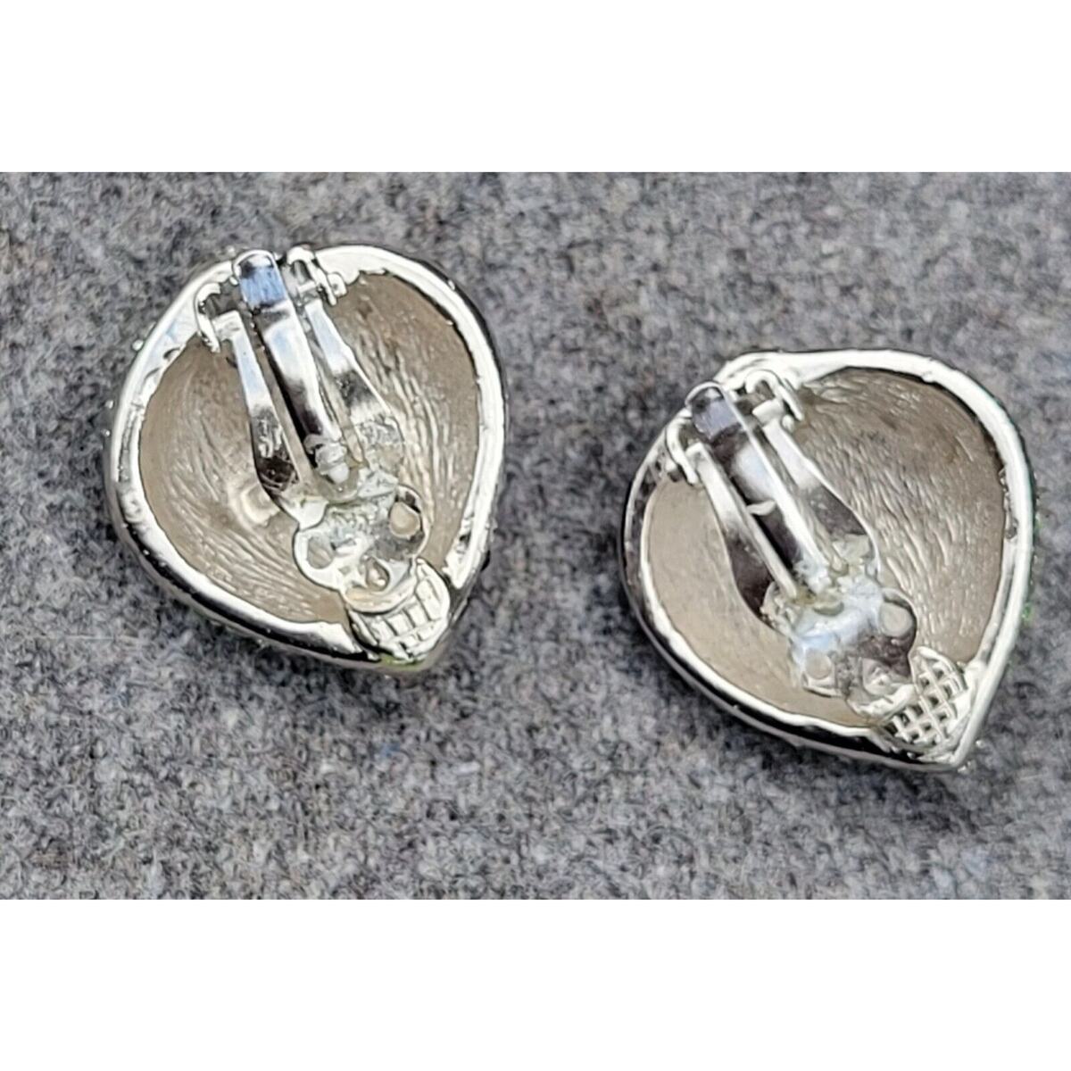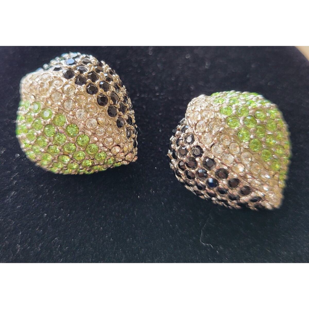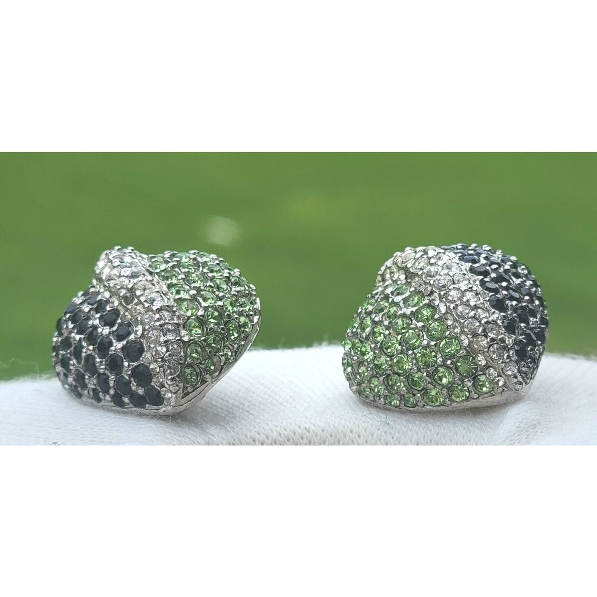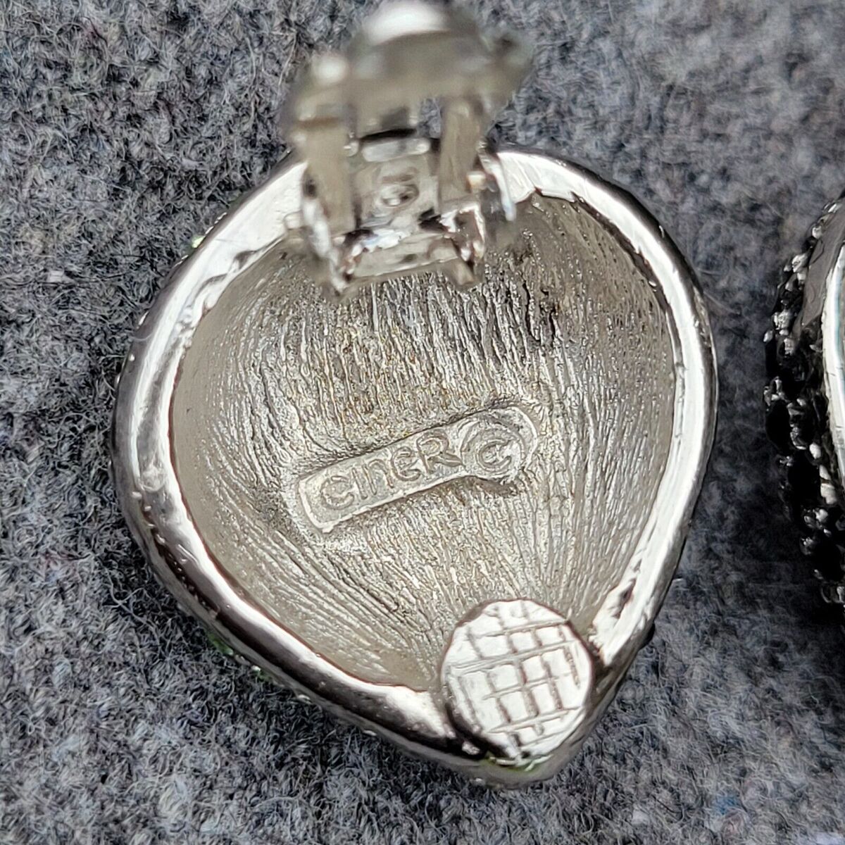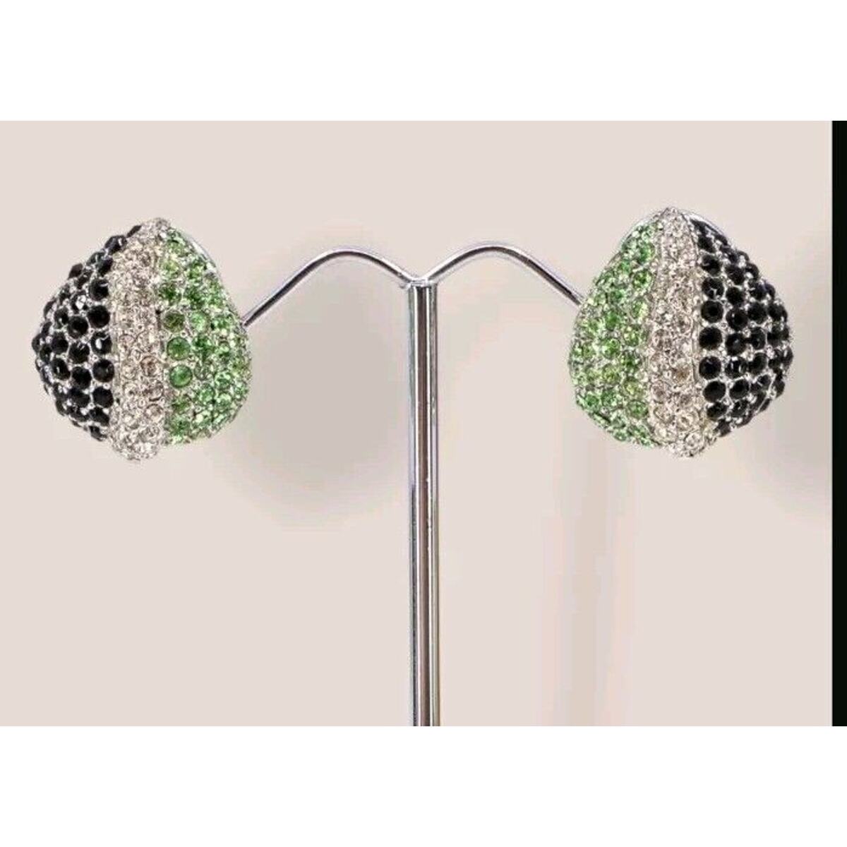 - Vtg Ciner signed Silverplate Lime & White Black Crystals Almond Earrings Clip On