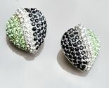 Vtg Ciner signed Silverplate Lime & White Black Crystals Almond Earrings Clip On