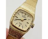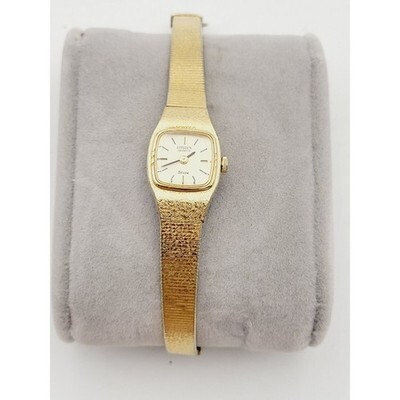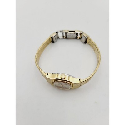 This vintage Citizen Seven ladies quartz watch features a gold bezel and two-piece strap. The watch has a square stainless steel case with a gold band, creating a classic and elegant look. The model number is 4833554, and it is made in Japan. Please note that this watch is being sold for parts only, suggesting that it may not be in working condition.