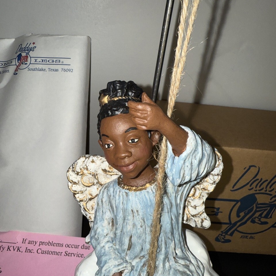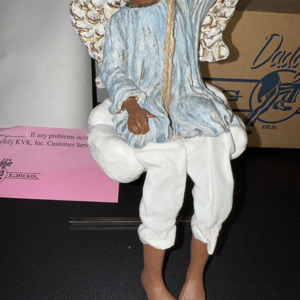 The Vtg Daddy's Long Legs Doll "Sarah" by artist Karen Germany is a 10-inch artist doll from 1995. This vintage doll comes with a stand, chair, and is signed by the artist, making it a unique and collectible piece for doll enthusiasts. Made in Germany, this doll features a dark complexion and is a perfect addition to any doll collection for fans of artist dolls and unique character designs.