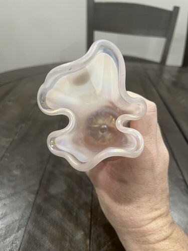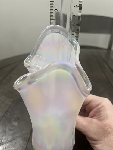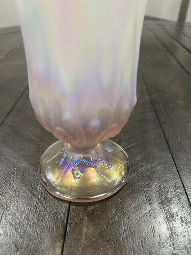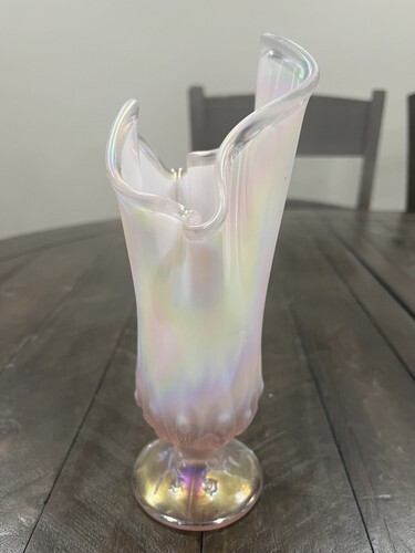 - Vtg Fenton Pink Opalescent Lily of the Valley Handkerchief Vase Sticker 8 3/4”