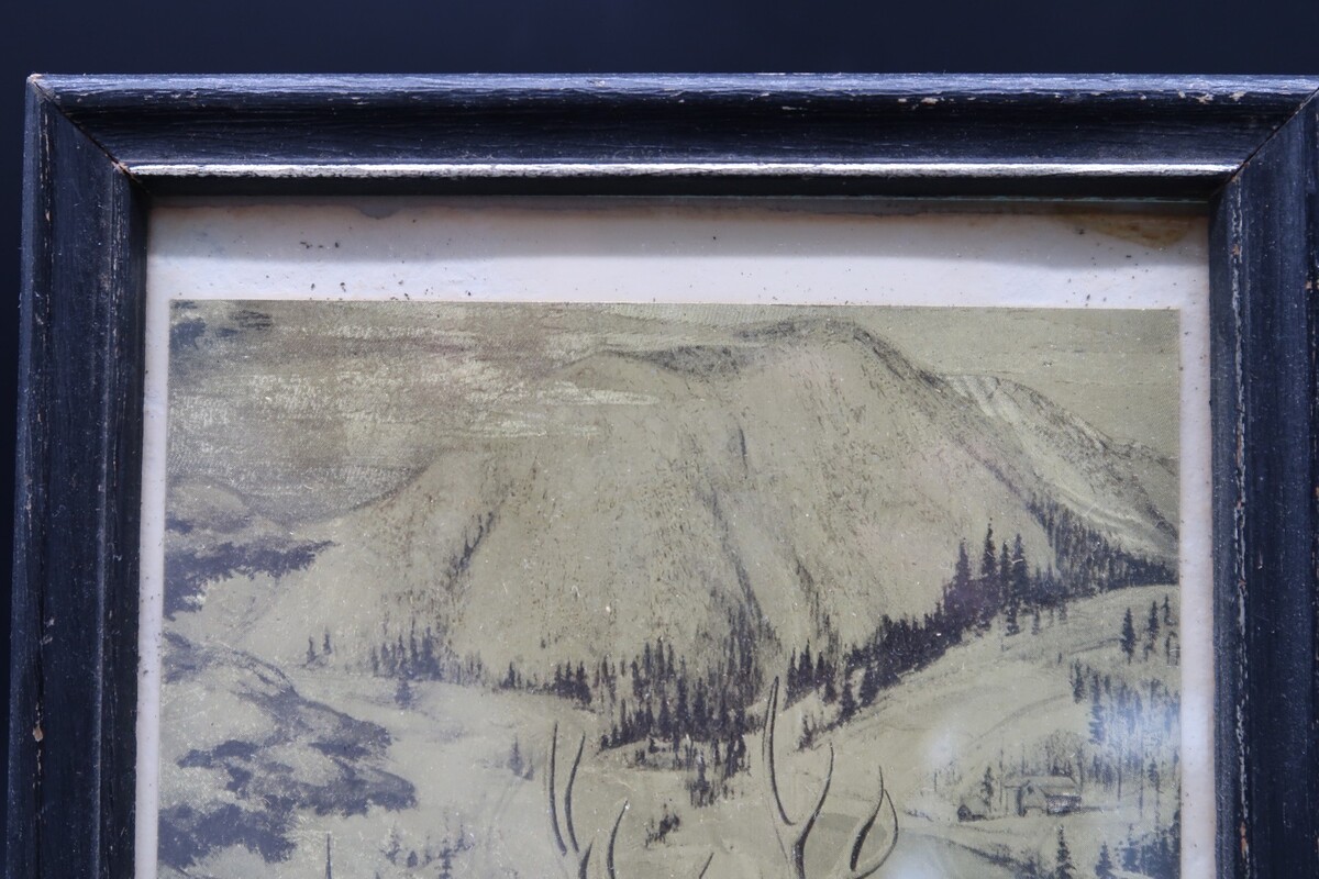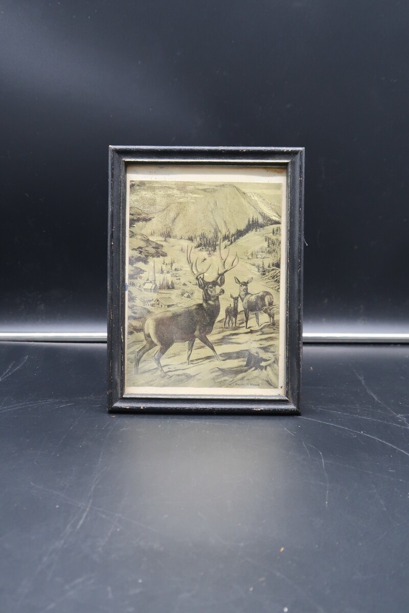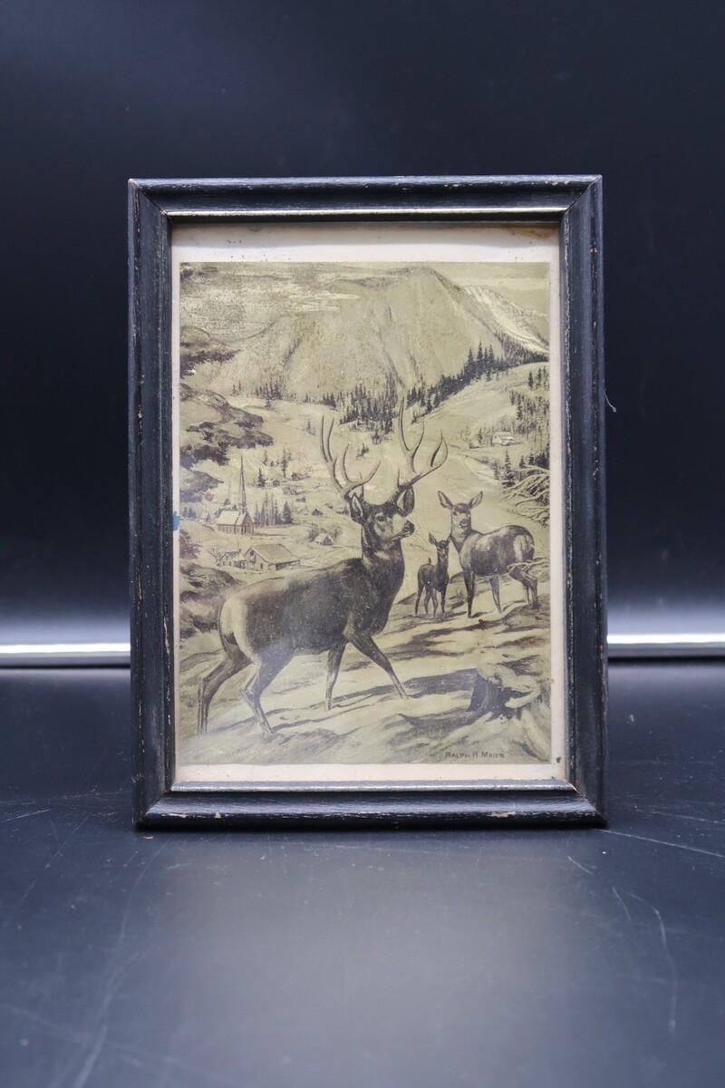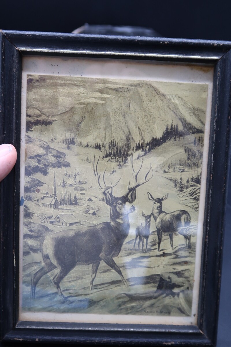 - Vtg Foil Etching Nature Scene Ralph H Maier Framed RPI Alum Beautiful Art Deer