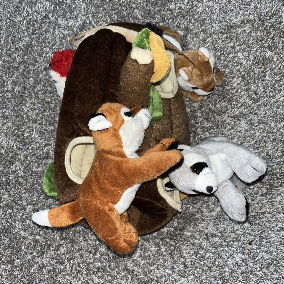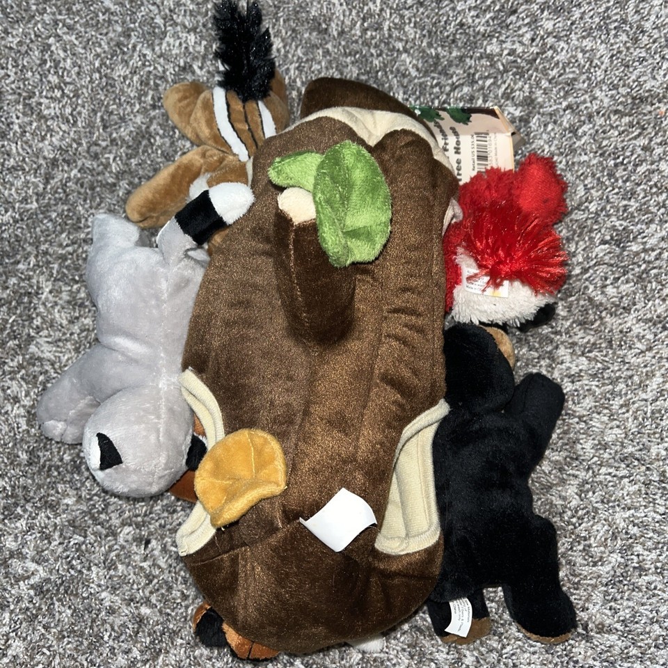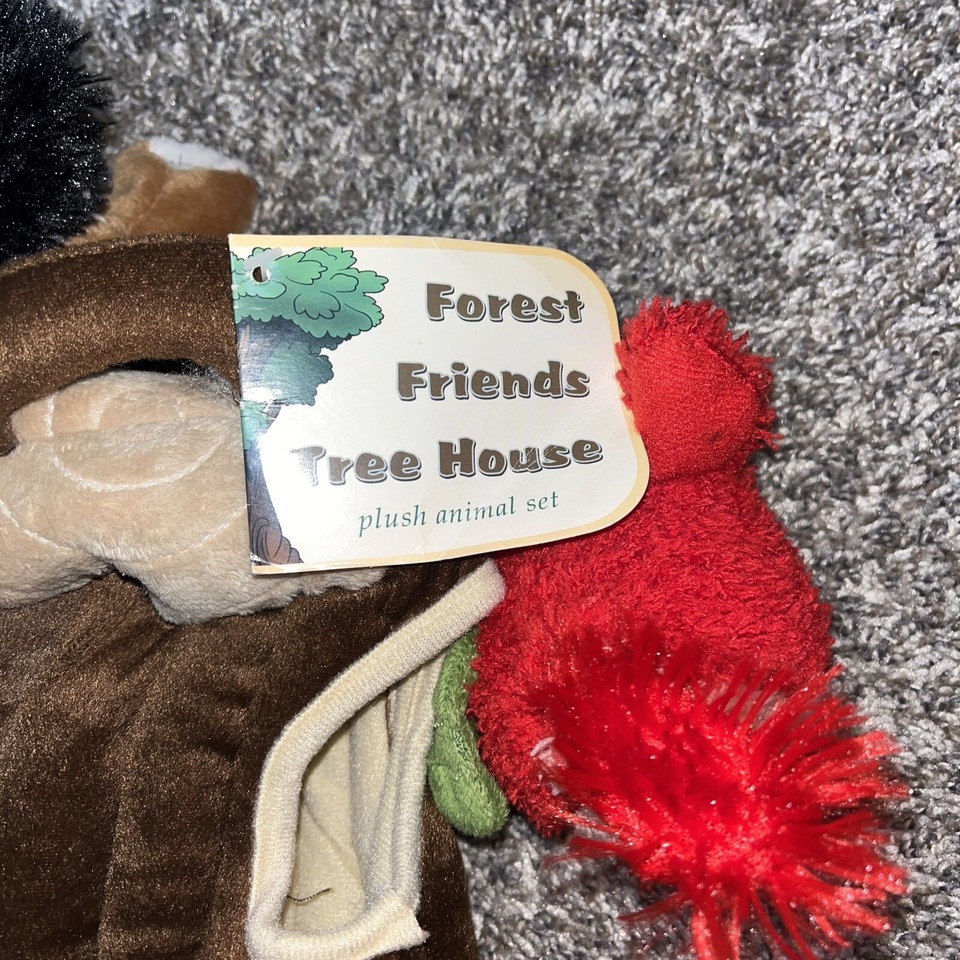 - VTG FOREST FRIENDS TREE HOUSE PLUSH ANIMAL SET W/ CARDINAL FOX RACOON SQUIRREL