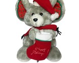 - Vtg Fun World Stuffed Plush Christmas Mouse with Plaid Ears and Stocking 11"