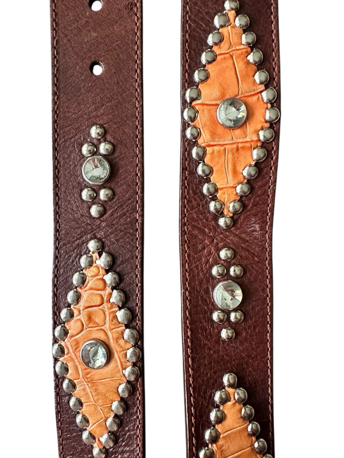 Very good preowned condition. No missing rhinestones. Silver buckle.