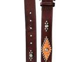 Vtg GUESS Leather Belt Big Buckle Studded Rhinestone Brown Y2K