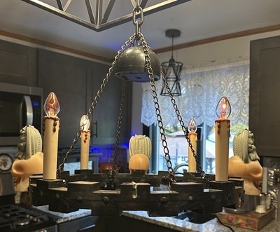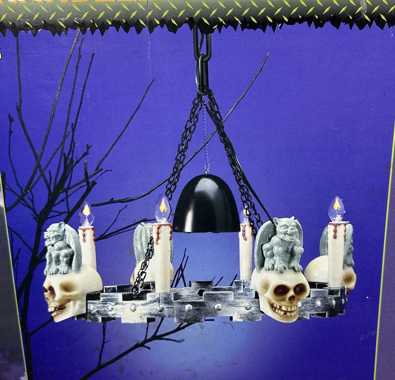 - Vtg Gemmy Haunted 16” Spooky Chandelier With Sound & Flickering Lights Gargoyles