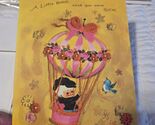 - Vtg Get Well Greeting Card Adorable Flowers Blue Bird, hot air balloon