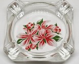 Vtg Glass Small Flower Ashtray Colorful Old Flower Orchid Print 4"