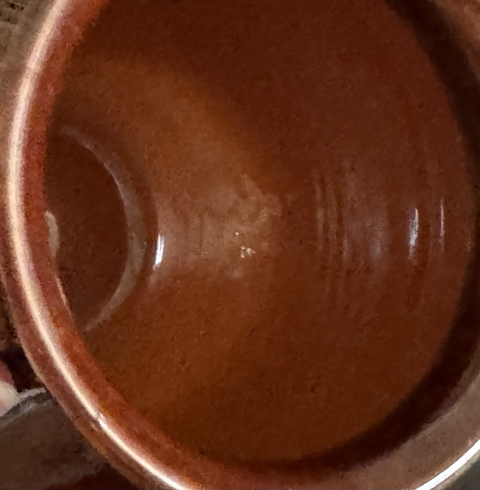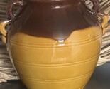 - Vtg Glazed Terracotta Jug Confit Pot Vase 2 Tone Brown Gold Unique Handle Rings