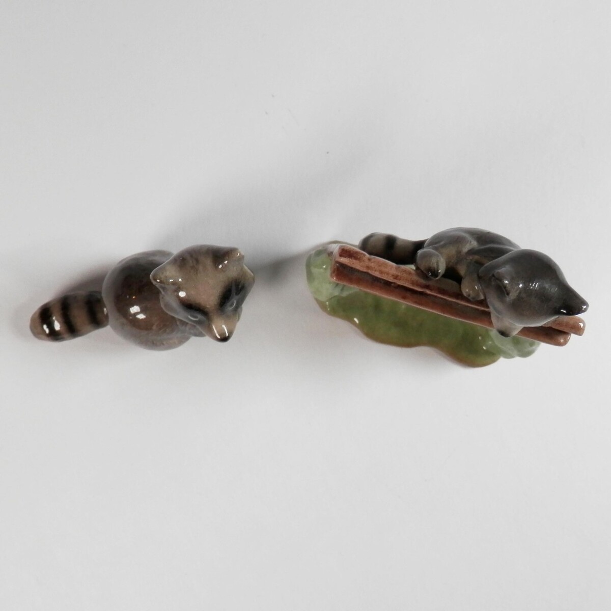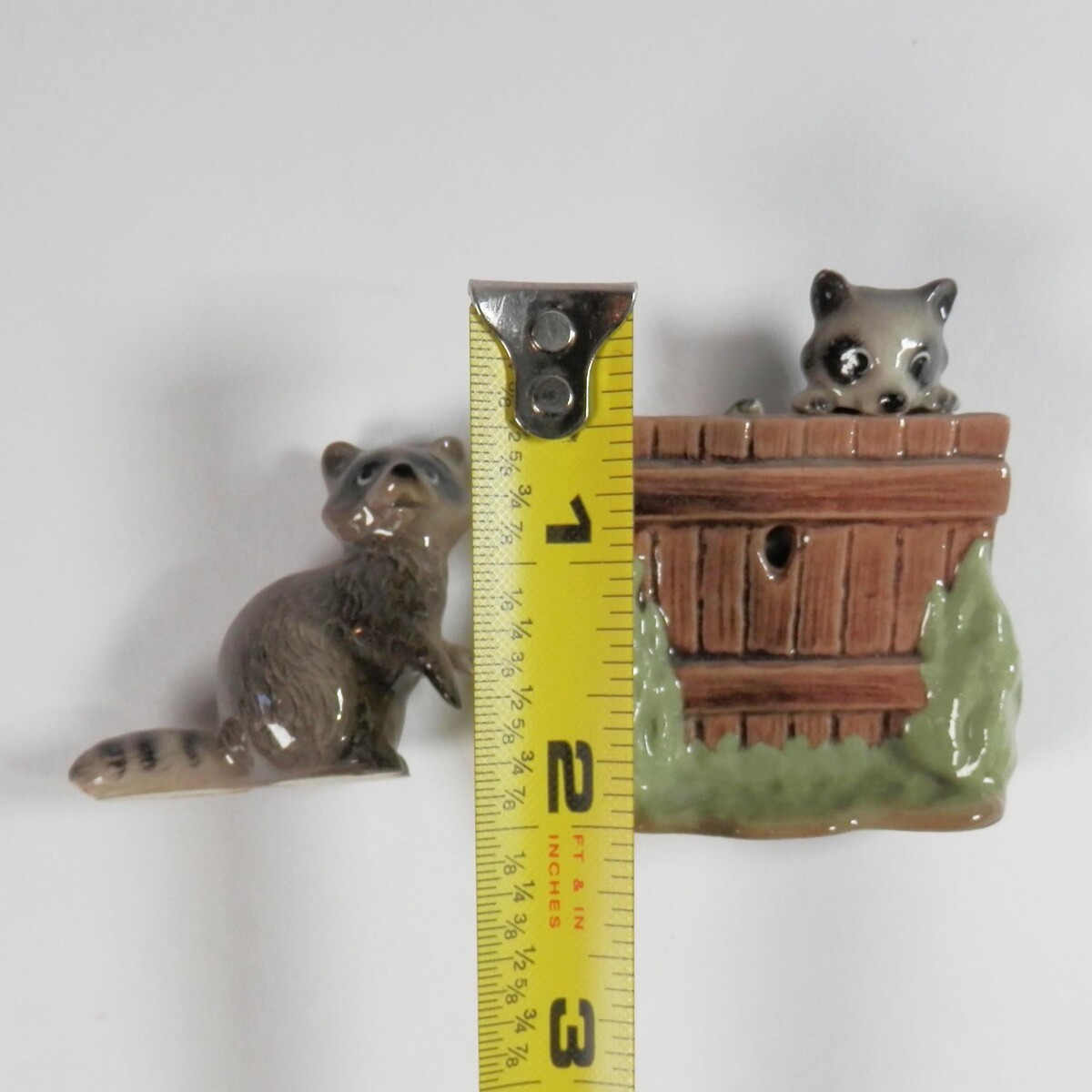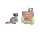- Vtg Hagen Renaker Mini Raccoons Figurines Peeking Over Fence & Standing