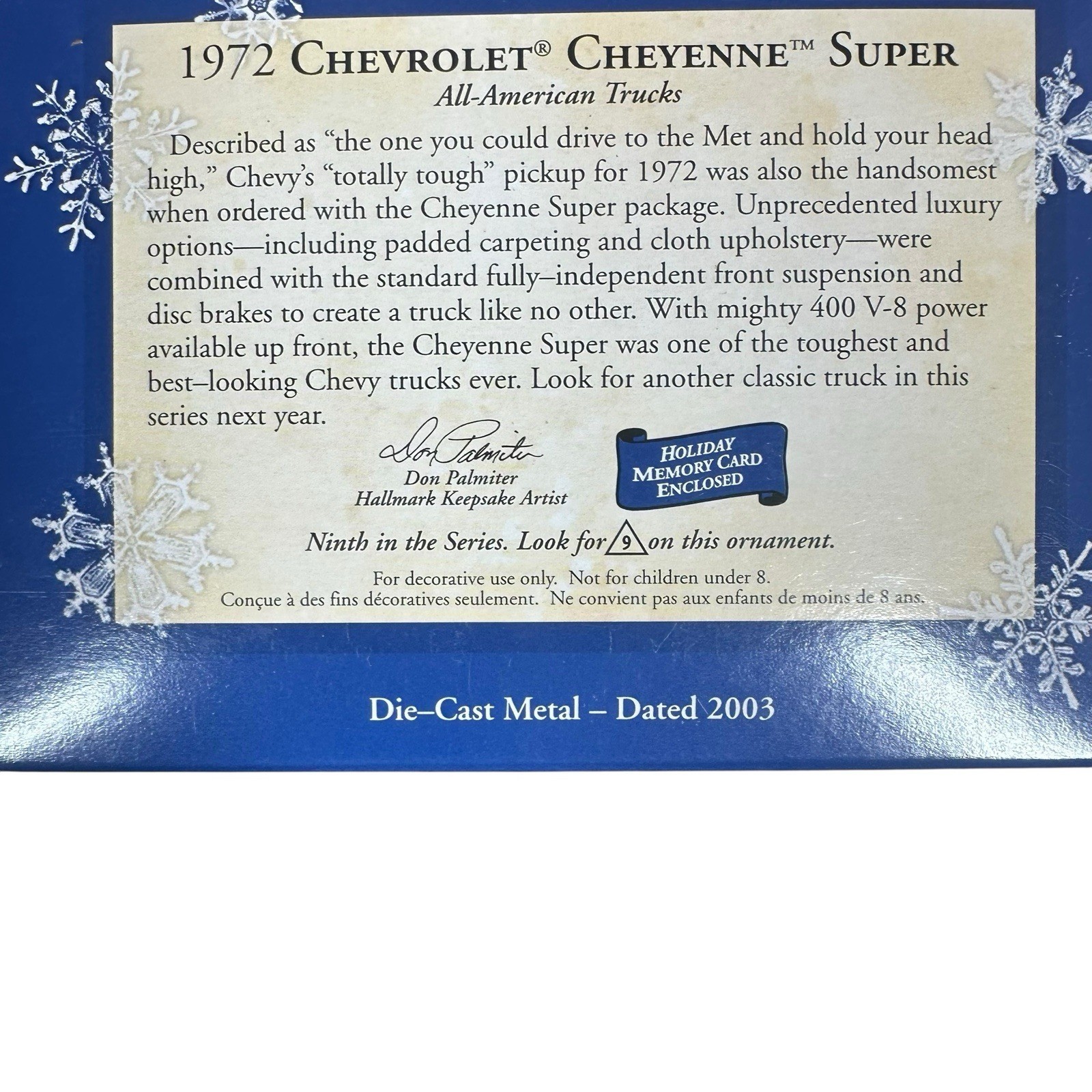- Vtg Hallmark Keepsake All-American Trucks #9 1972 Chevy Cheyenne Super 2003