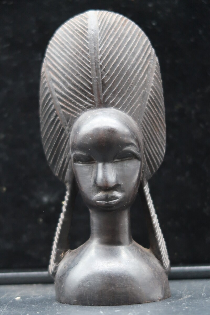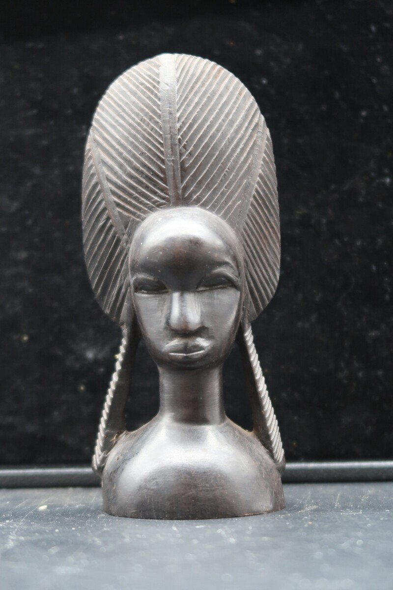 - Vtg Hand Carved Tanganyika Ebony Goddess Bust Statue 5.5"