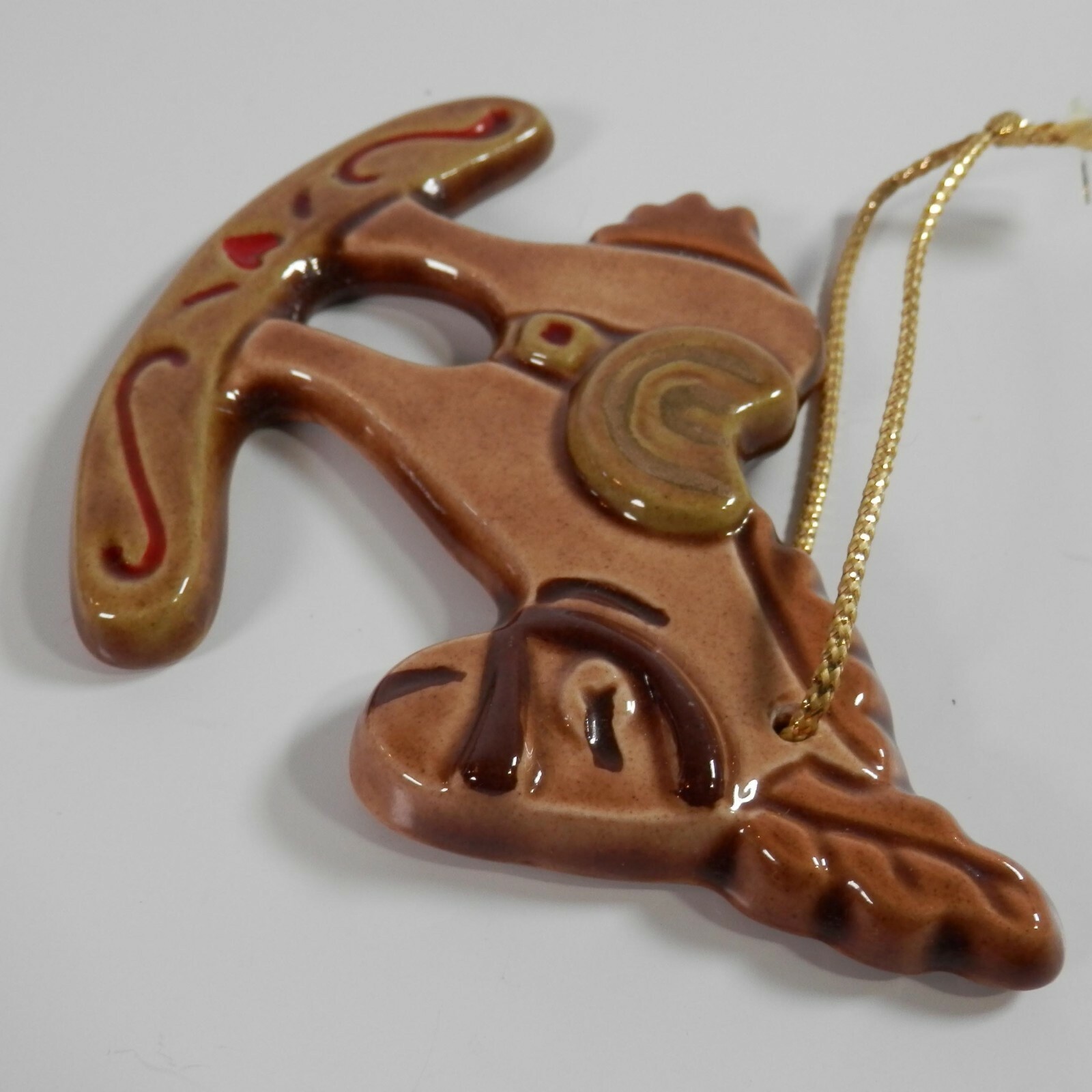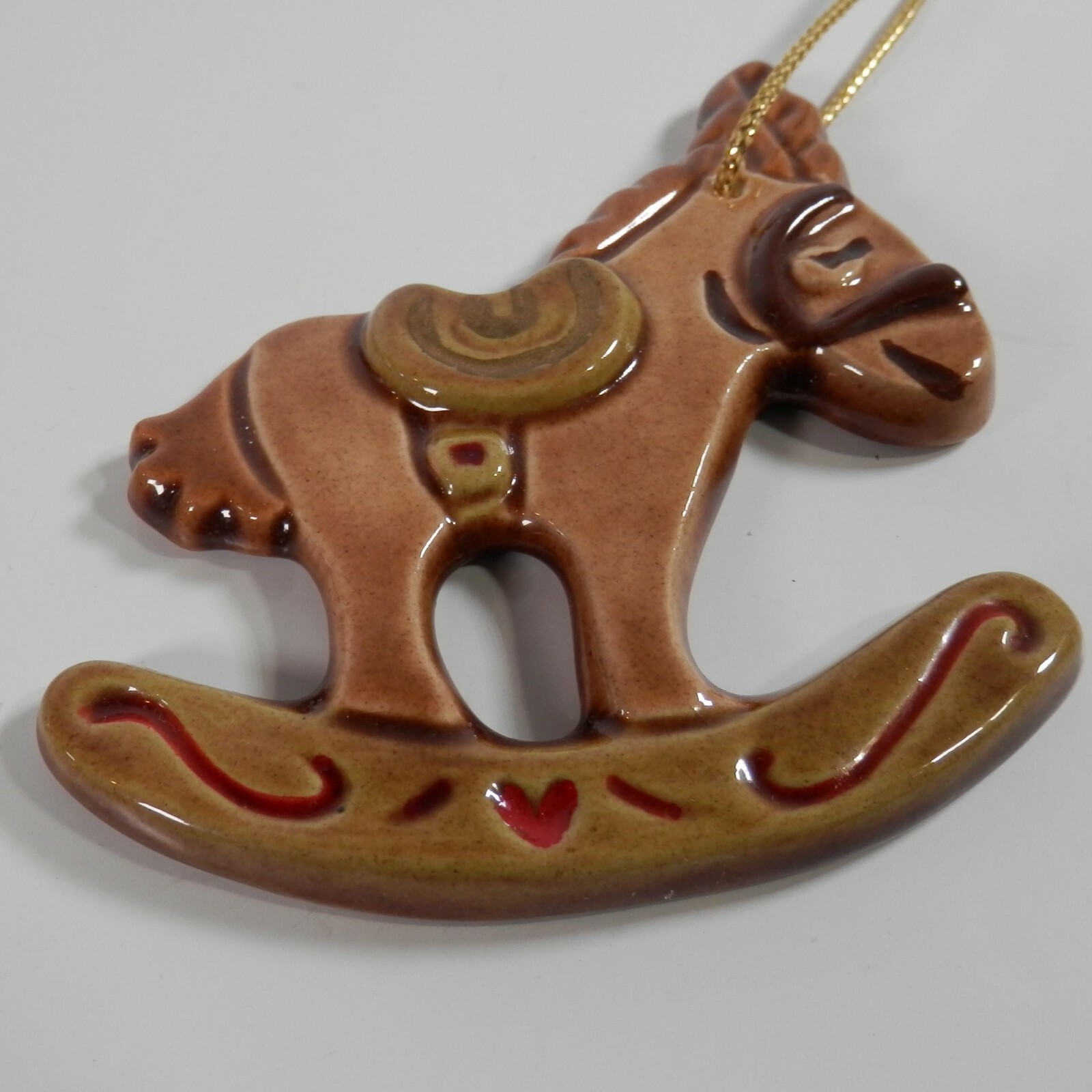 - Vtg Handpainted Glazed Ceramic Holiday Rocking Horse Ornament Donkey Gingerbread