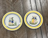Vtg Henriot Quimper 6” French Bread Plate Breton Man Woman France Set Of 2