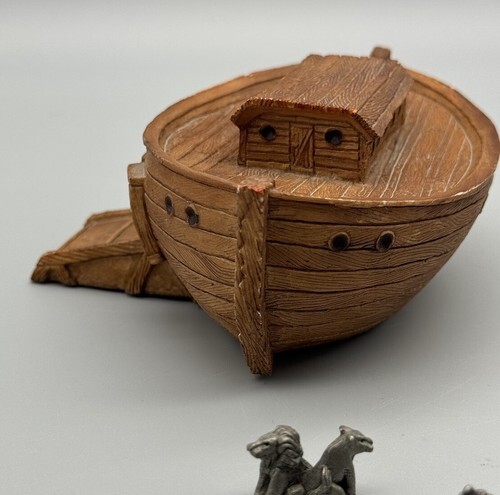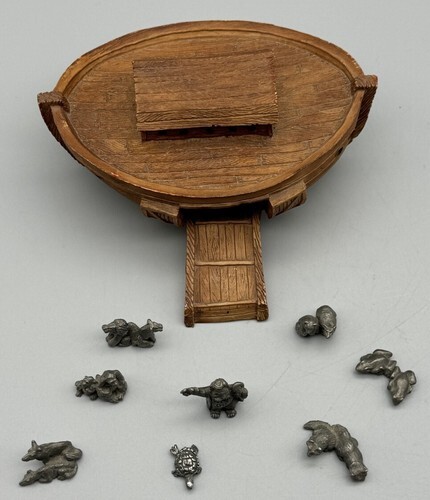 Rare Noah's Ark Set featuring a resin ark and 8 pewter miniatures