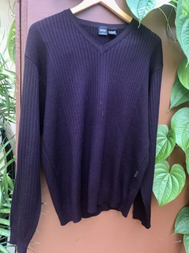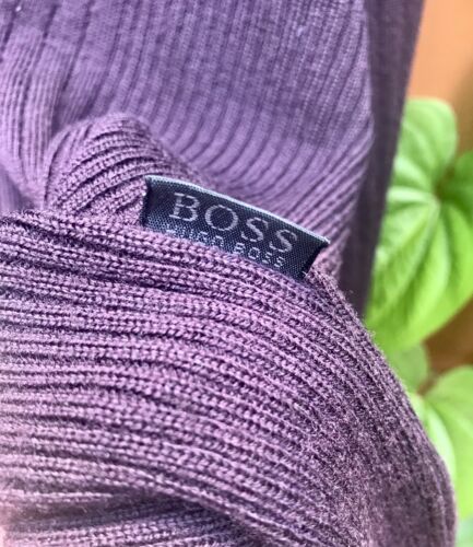 - Vtg HUGO BOSS Emauro Slim V-Neck 100% Virgin Wool PURPLE Knit Sweater Italy M-L