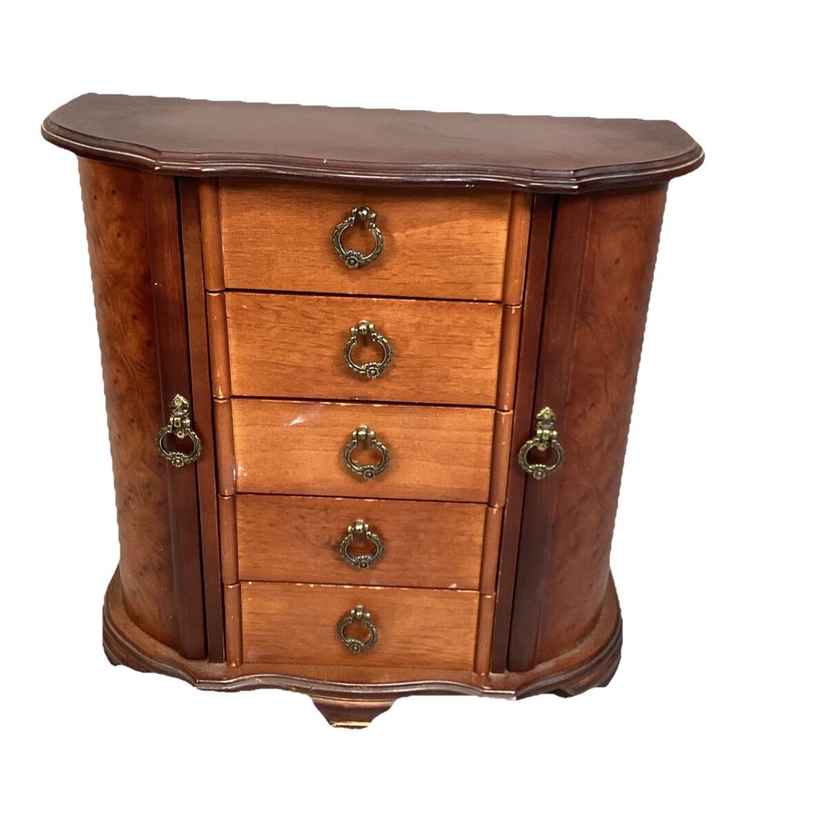 - Vtg Jewelry Organizer/Armoire - 2 Doors & 5 Drawers - 13”H