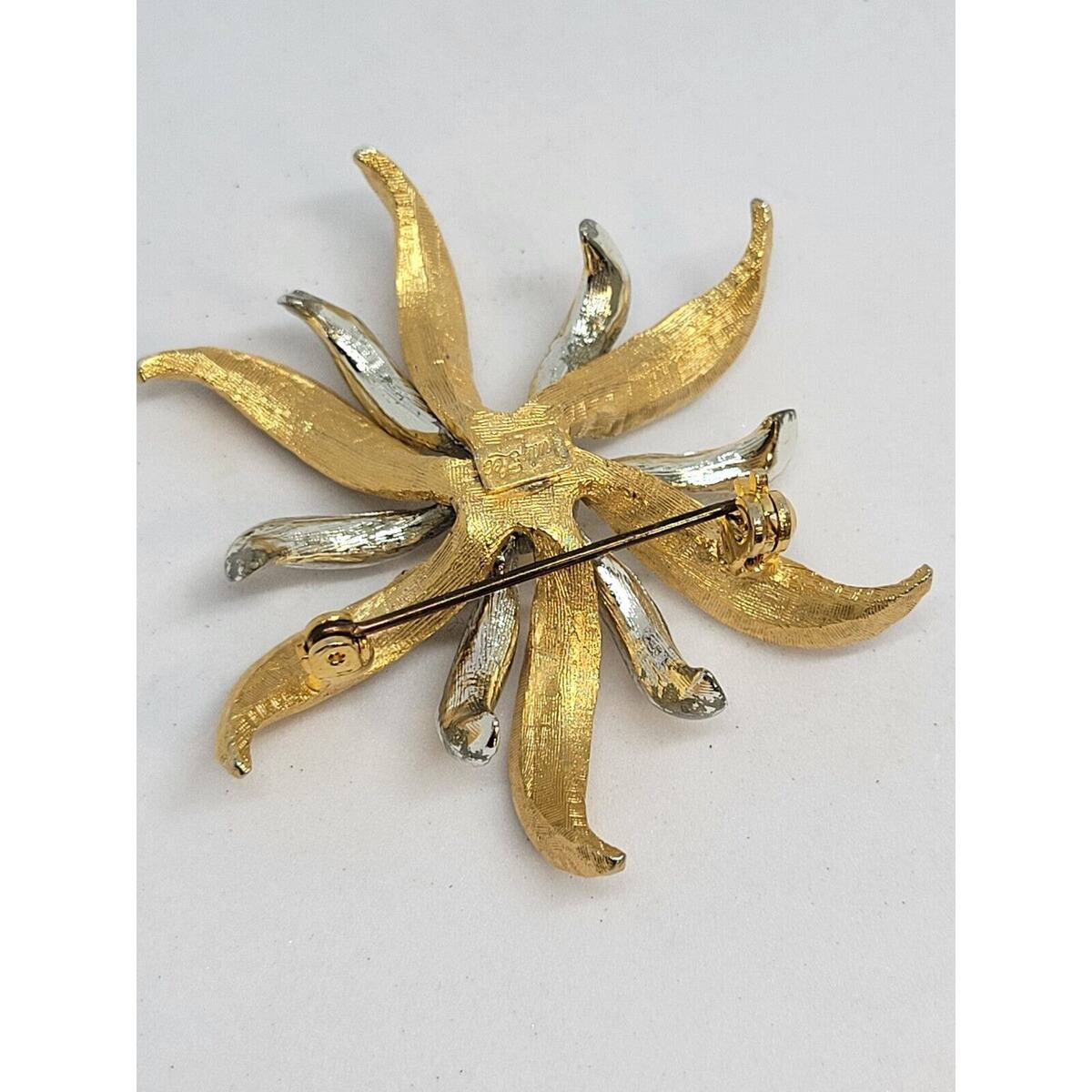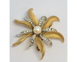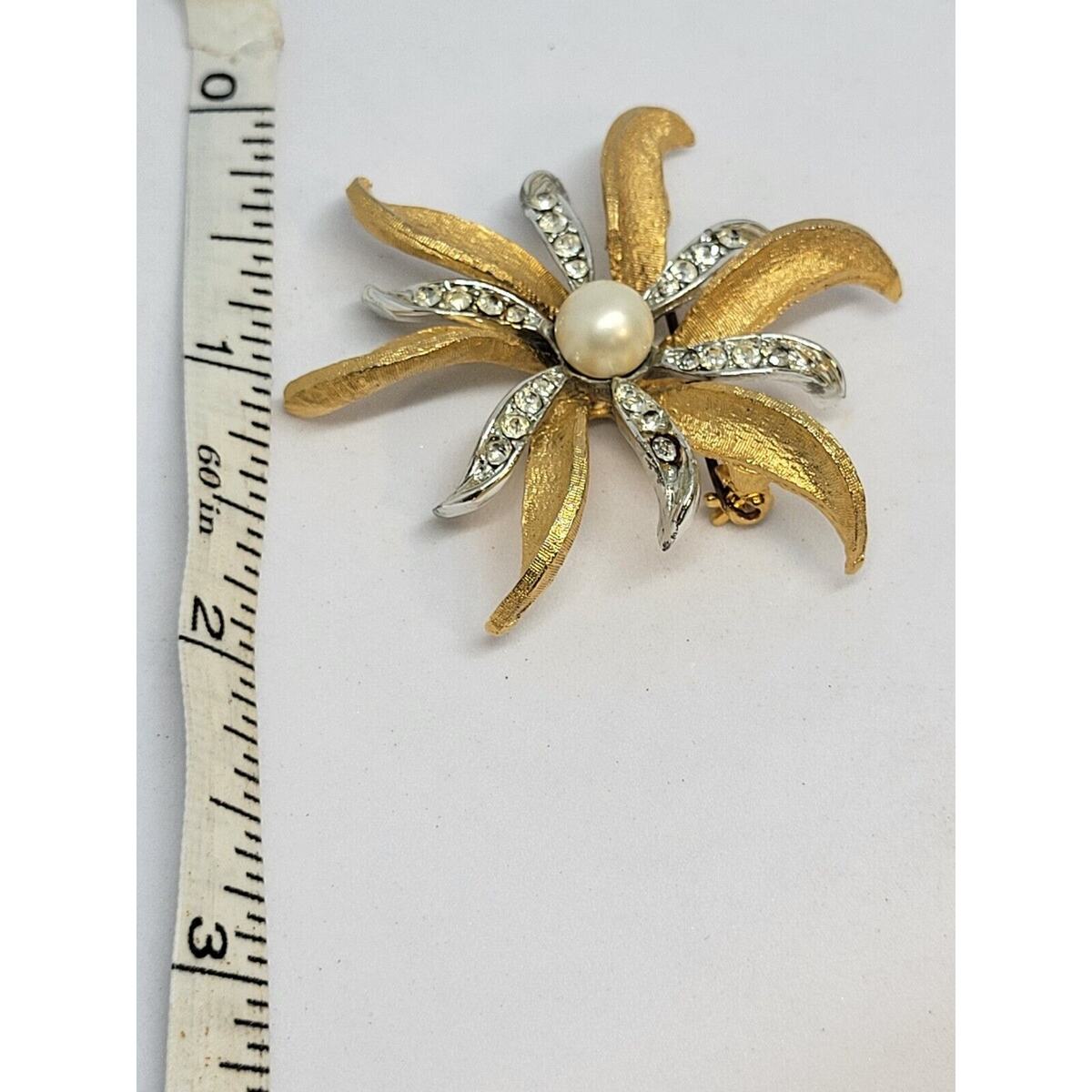 - Vtg Judy Lee Signed Clear Rhinestone Faux Pearl Star Flower 2 Tone Brooch Pin