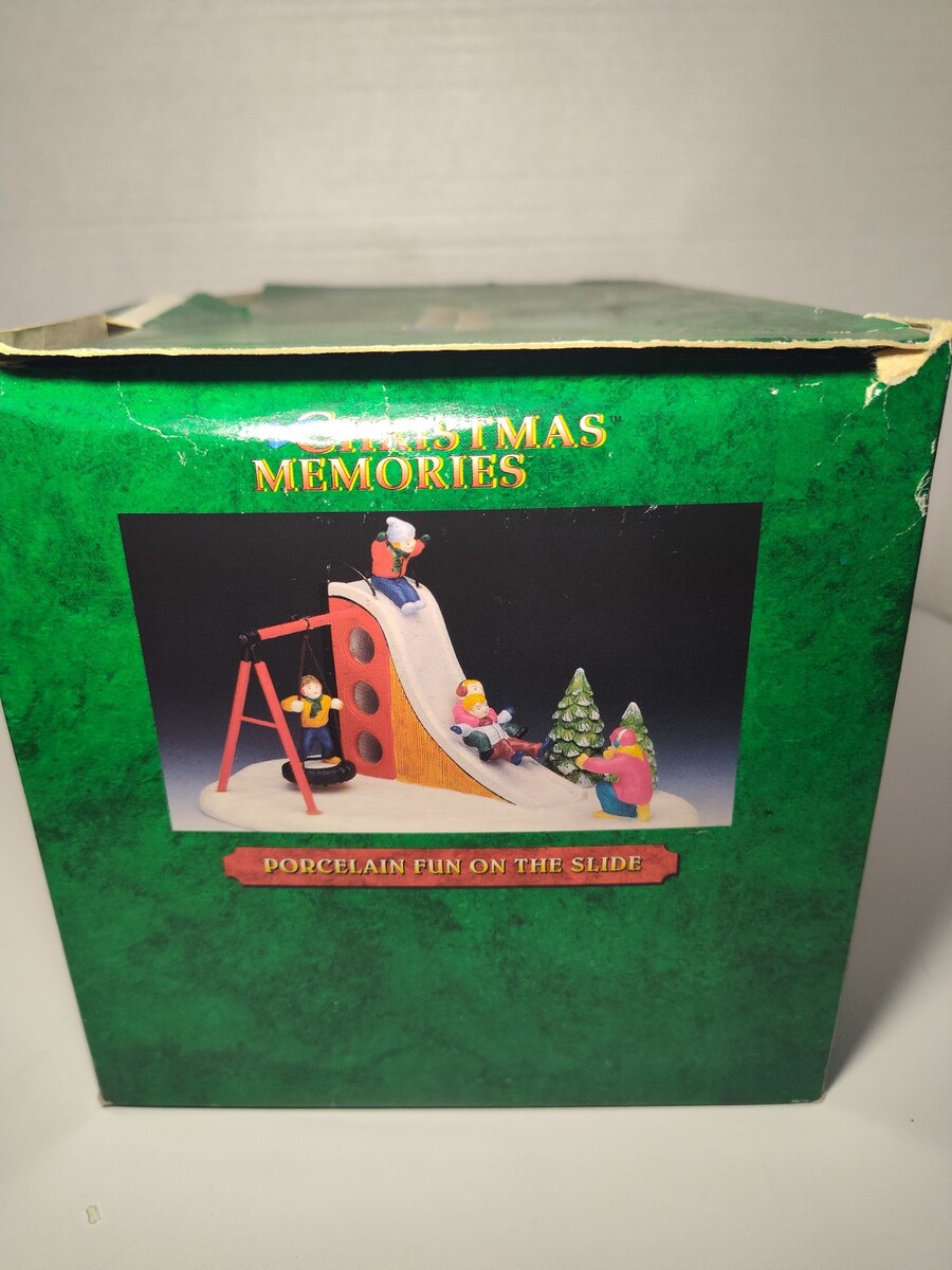 - Vtg Lemax Village Collection Porcelain Fun on the Slide w/Box and extra items