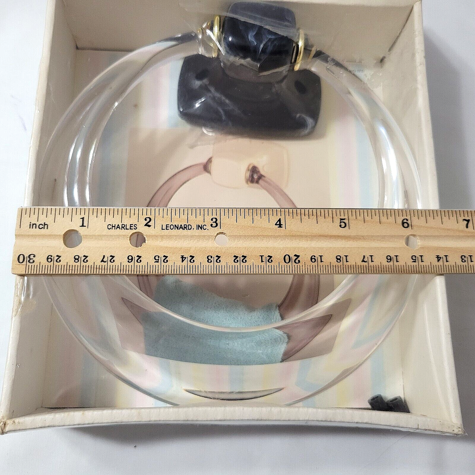 Vtg Londonware Clear Lucite Towel Ring NEW Black Swirl Wall Mount Bath Kitchen