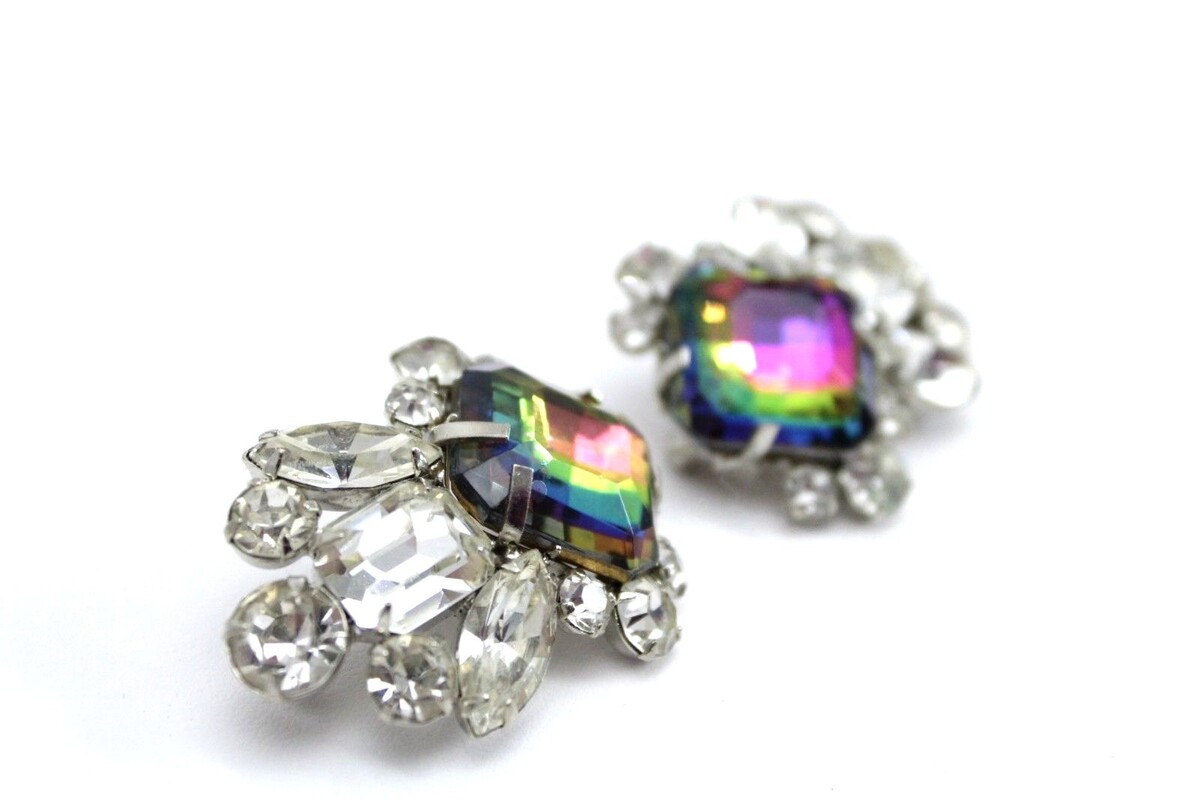 - VTG Melon RIVOLI RHINESTONE SQUARE Brooches Pins 2- 1 3/4 Statement Matching