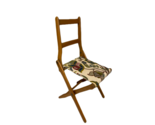 - Vtg Mid Century Modern Wooden Maple Folding Chair Crewel Embroidered Seat MCM