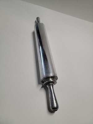 - Vtg Mid Century Stainless Steel Rolling Pin Pastry Pizza Farmhouse Kitchen Decor
