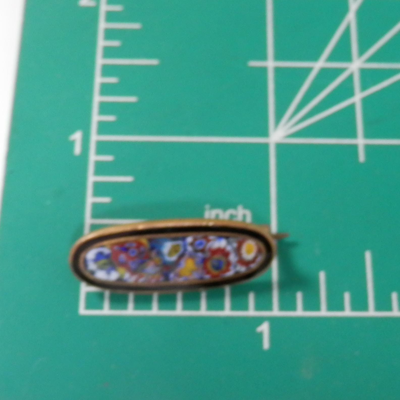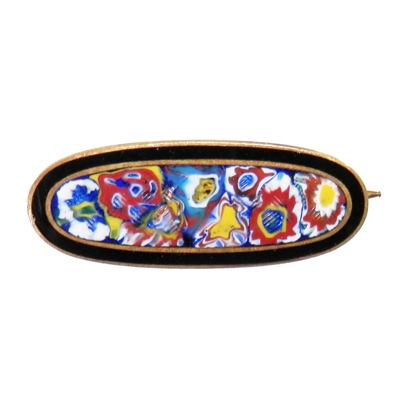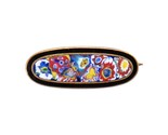 - Vtg Millefiori Cloisonne Scatter Floral Enamel Flower Pin 1" Oval Blue Red