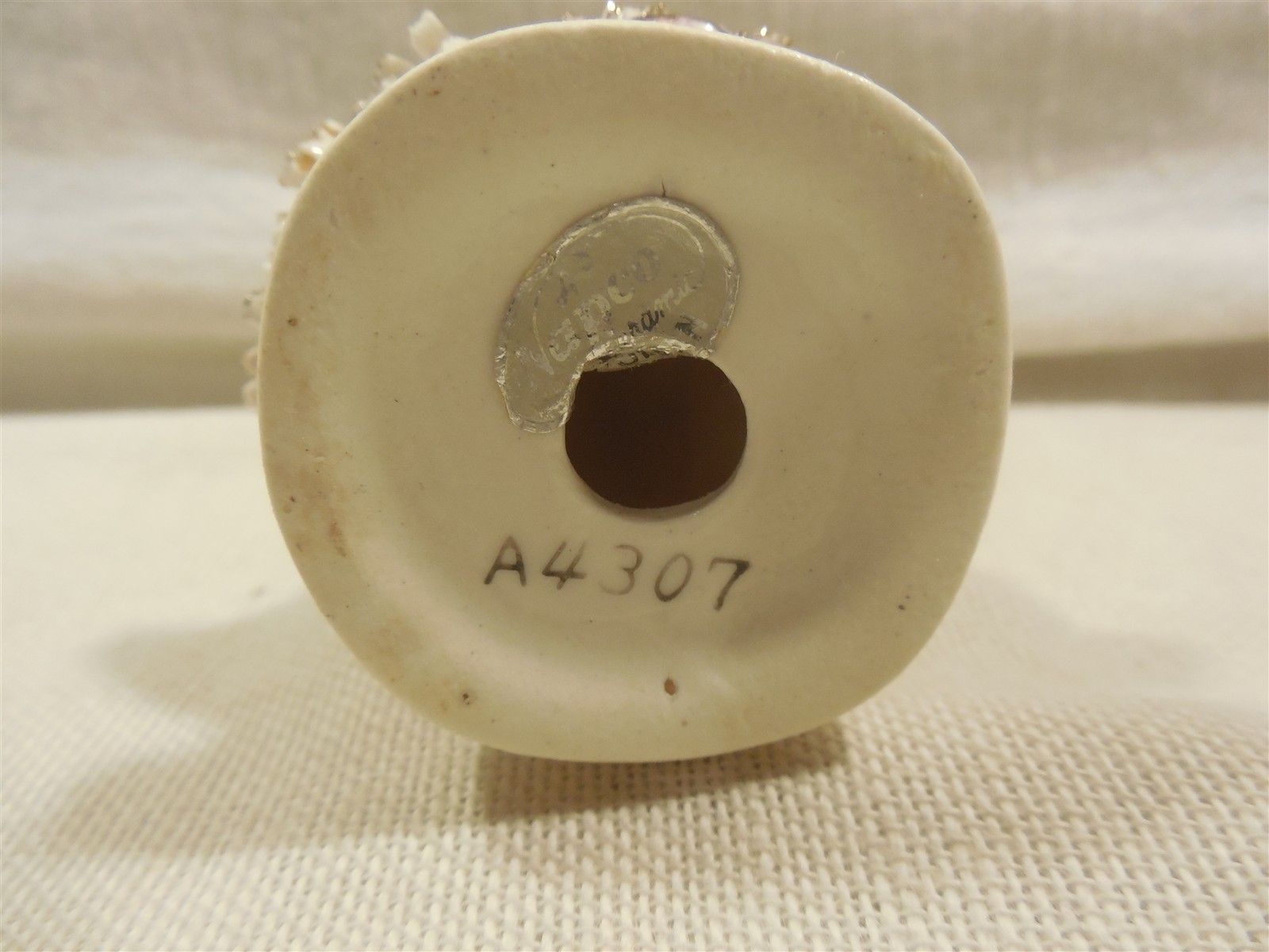 This is a vintage Napco Japan Ceramic October Birthday Angel Girl figurine (A4307). The girl is holding a Halloween mask in her hands - pink bow on her dress and in her hair - lots of spaghetti trim around the bottom of the dress - the front of the base is marked October in gold. The original silver foil Napco Japan label is attached to the bottom and is marked A4307. The figurine measures approximately 3 1/4" tall and 2 1/4" wide. Nice clean cute Napco Japan ceramic October birthday angel girl figurine that displays absolutely great when sitting on a shelf!